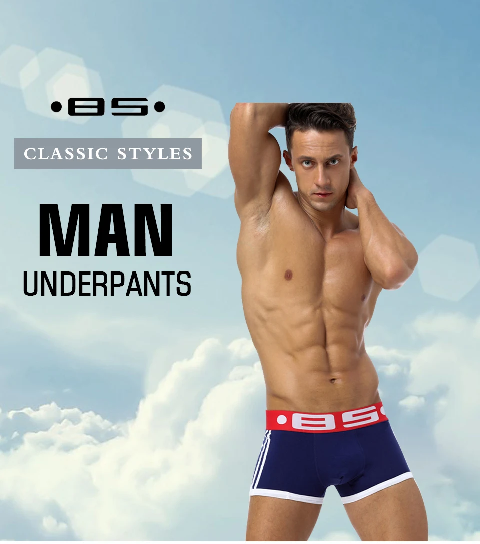 BS Brand Boxer Men Underwear Sexy cotton Boxers Gay Underwear Cueca male underpants slip Cuecas Male Panties Boxershorts BS40