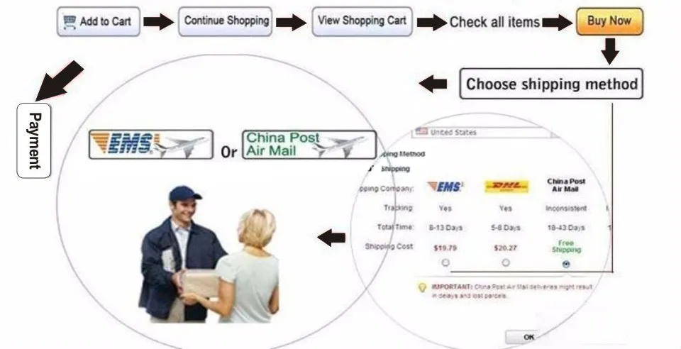Packages from our warehouse in China will be shipped by ePacket or EMS depending on the weight and size of the product. Packages shipped from our US warehouse are shipped through USPS.