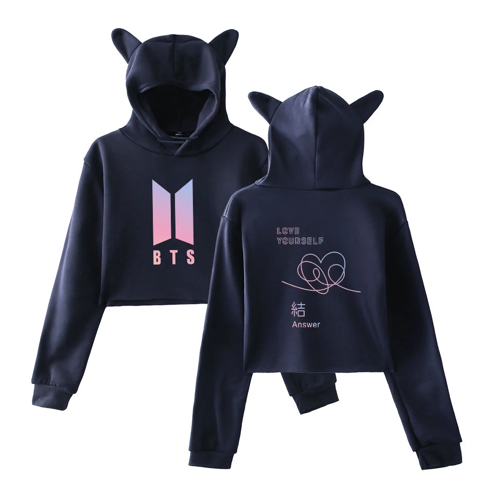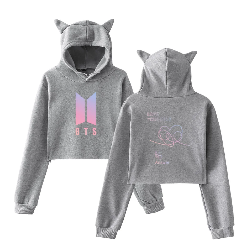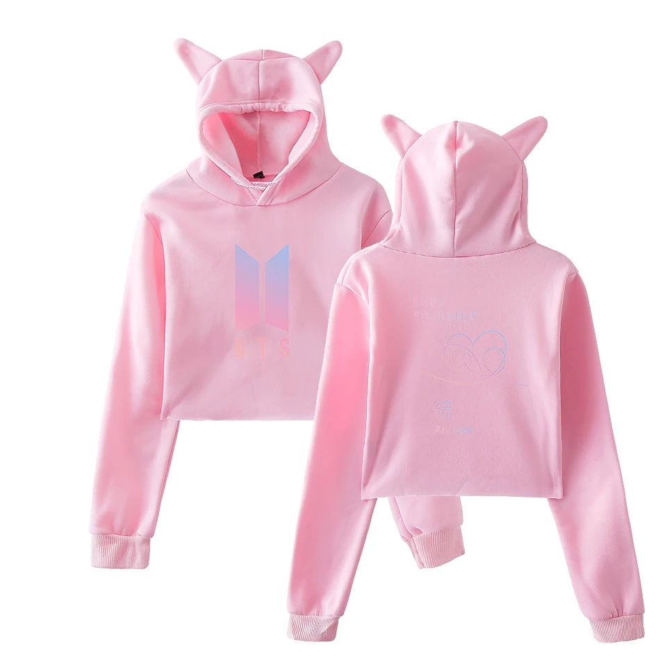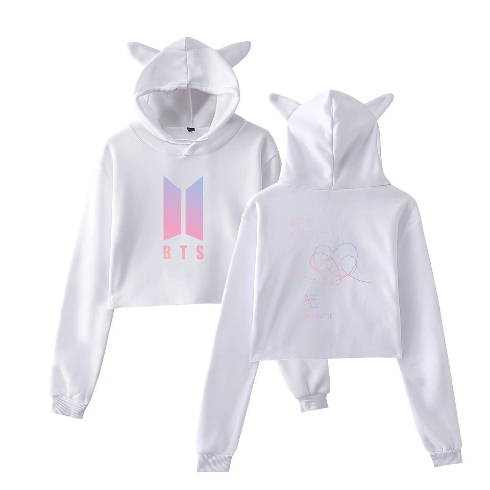 BTS Love Yourself Answer Girls Hot Cat Ears Cap Short Sexy Hoodies 2018 K-pop BTS Hip Hop Fashion Ladies Sexy Hoodie Sweatshirt