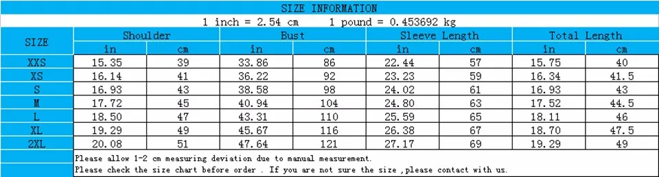 XXS XS S M L XL XXL