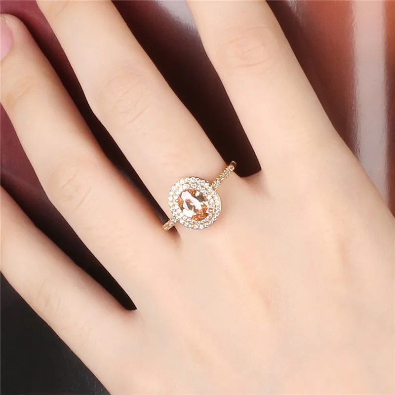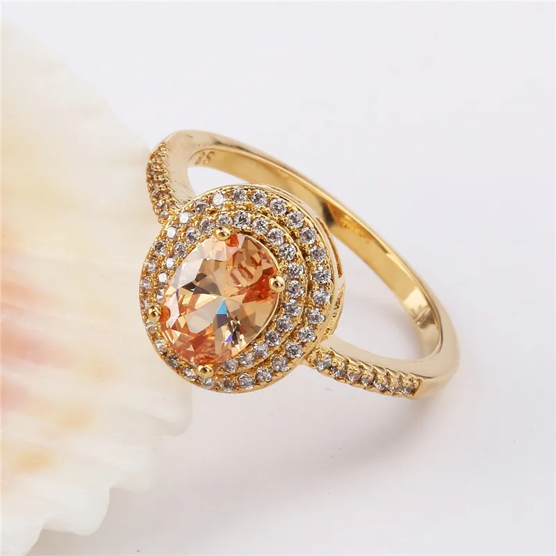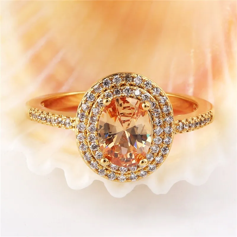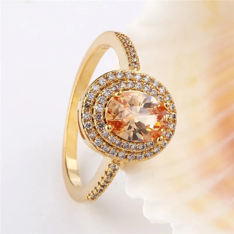 BUDONG 2017 Stylish Finger Ring for Women Gold Color Shiny Big Orange Oval Crystal Zirconia Luxury Wedding Jewelry XUR295