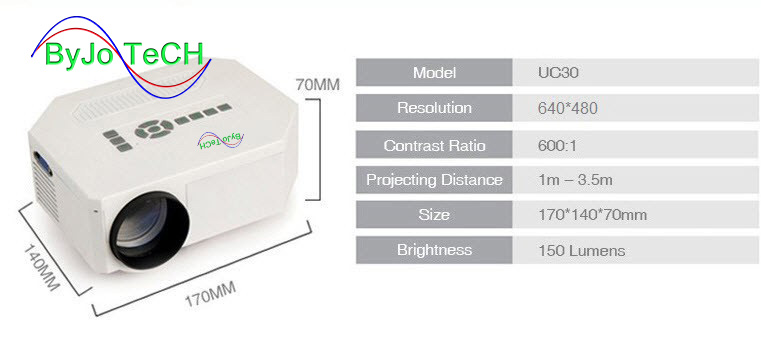 ByJoTeCH UC30 HD mini LED projector / Native 640X480 / Support HDMI / Three Glasses lenses/ 150 lumens With Remote Controller