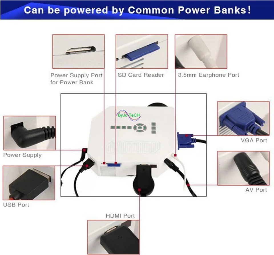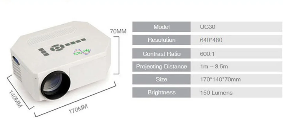 ByJoTeCH UC30 HD mini LED projector / Native 640X480 / Support HDMI / Three Glasses lenses/ 150 lumens With Remote Controller
