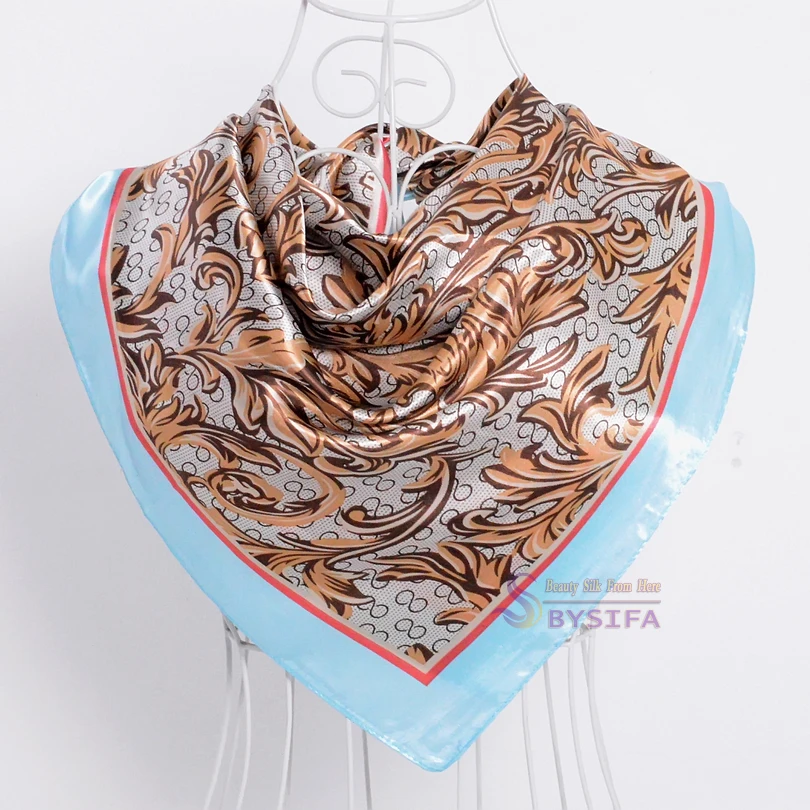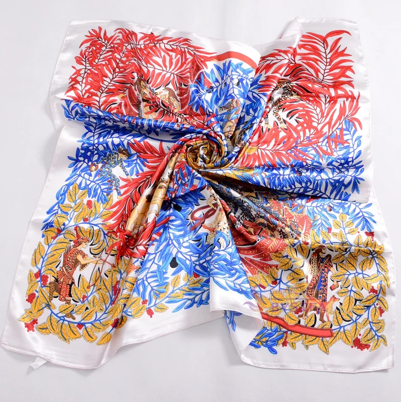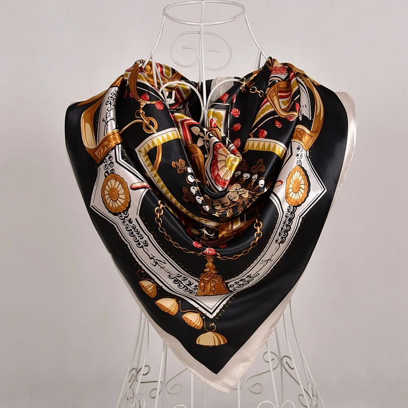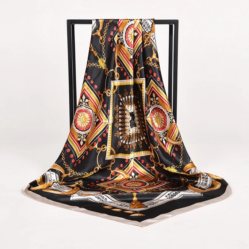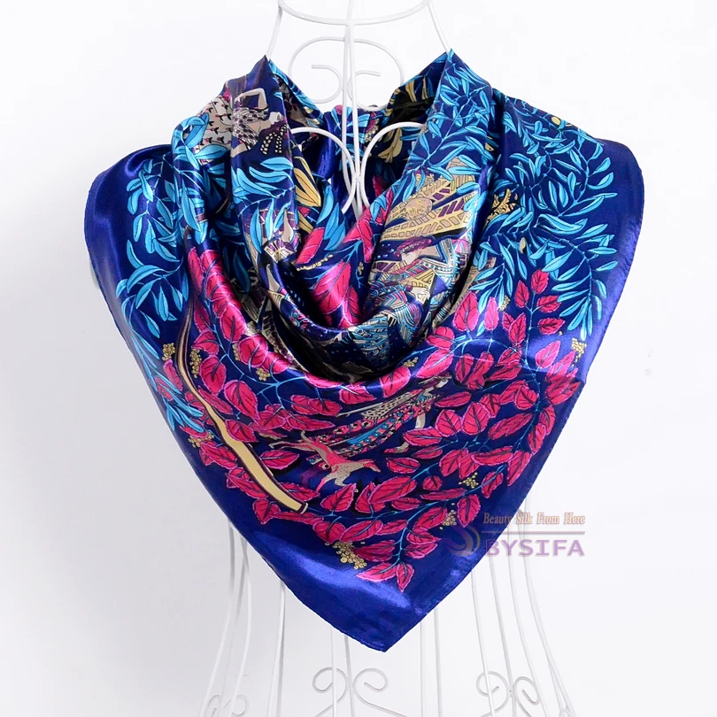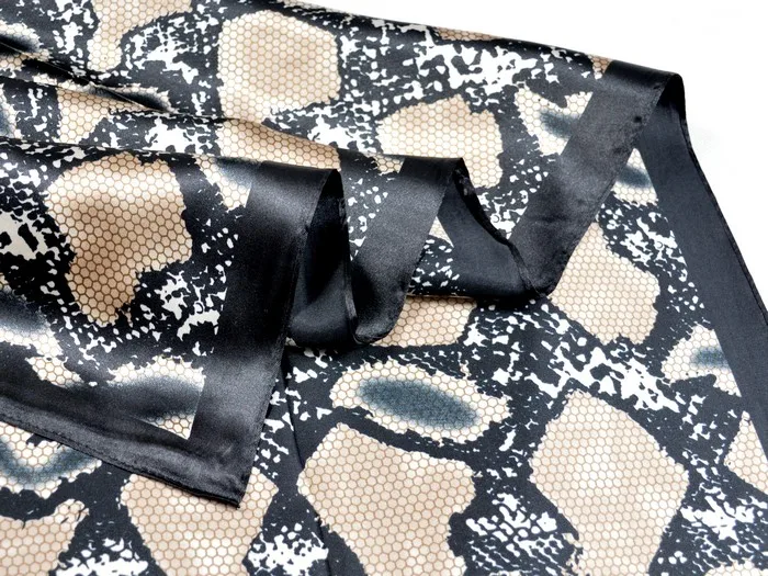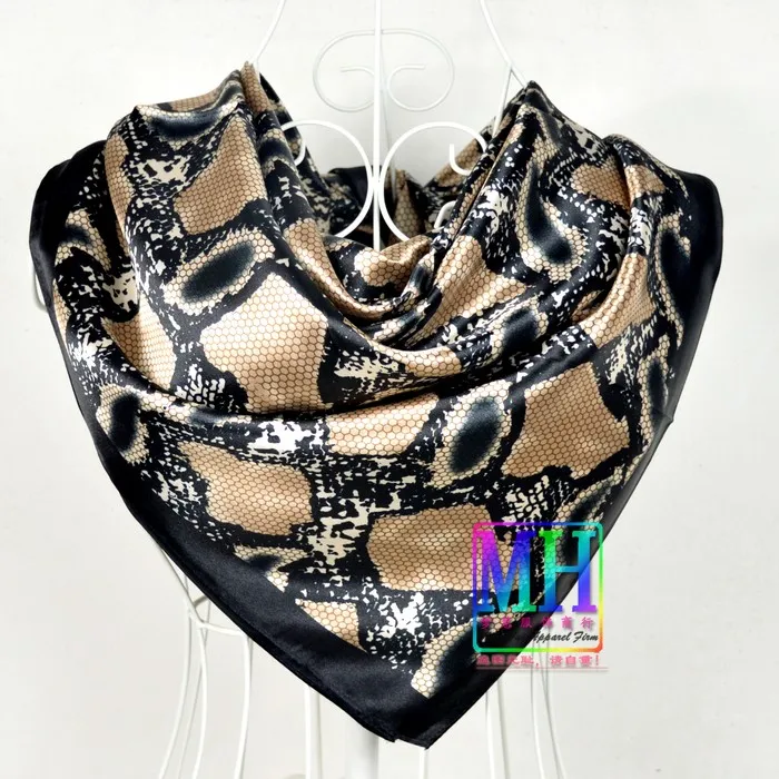 [BYSIFA] Snake Print Black Satin Square Scarves Headscarves 90*90cm Winter Women Shawls Scarves Wraps Summer Air-condition Shawl