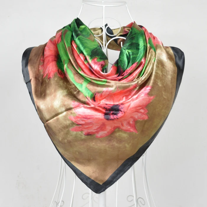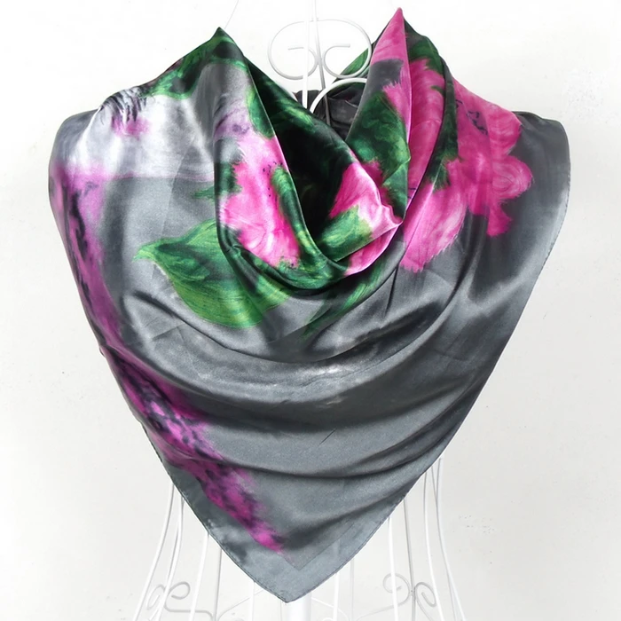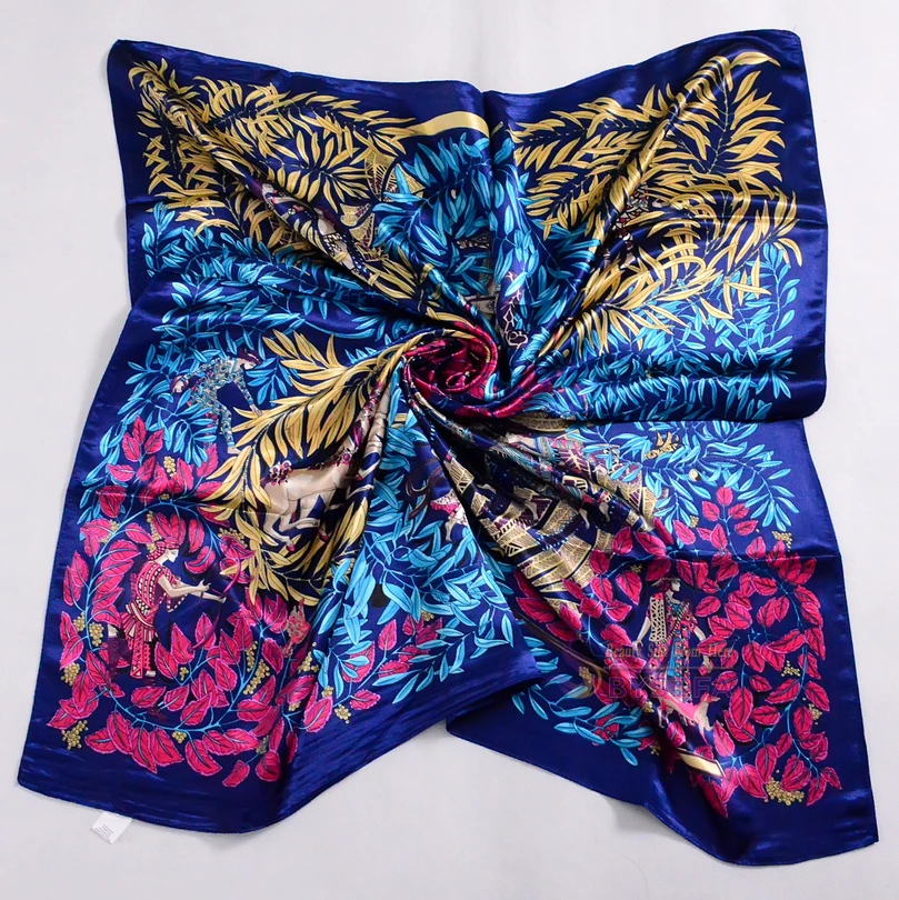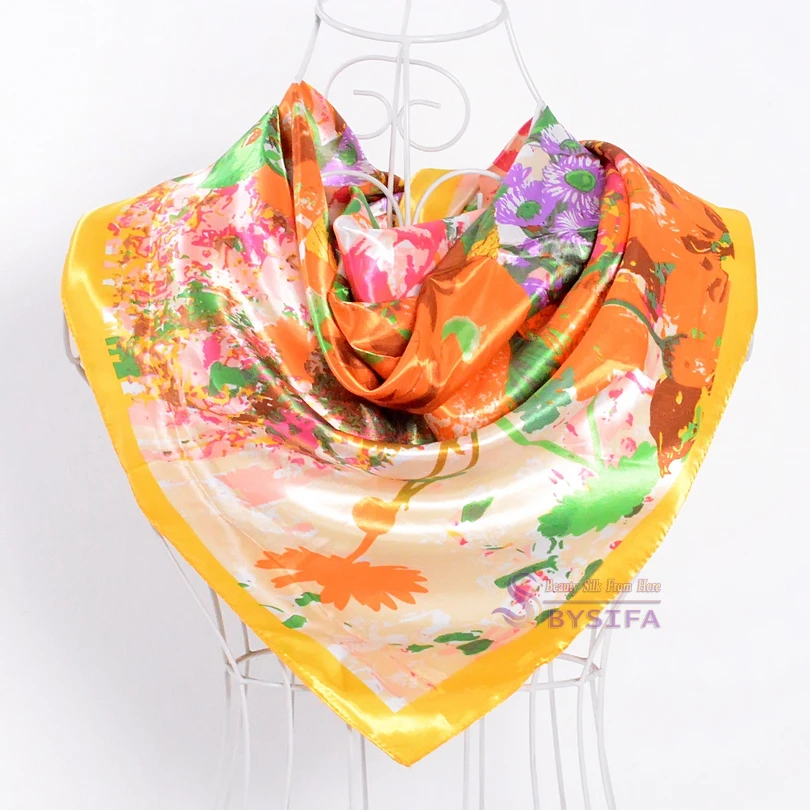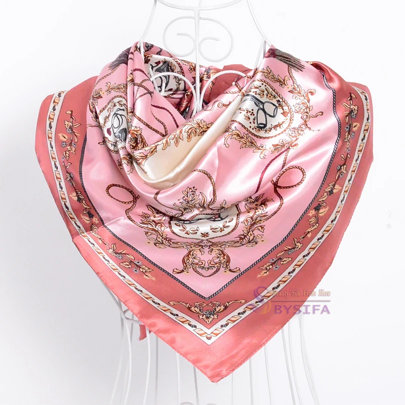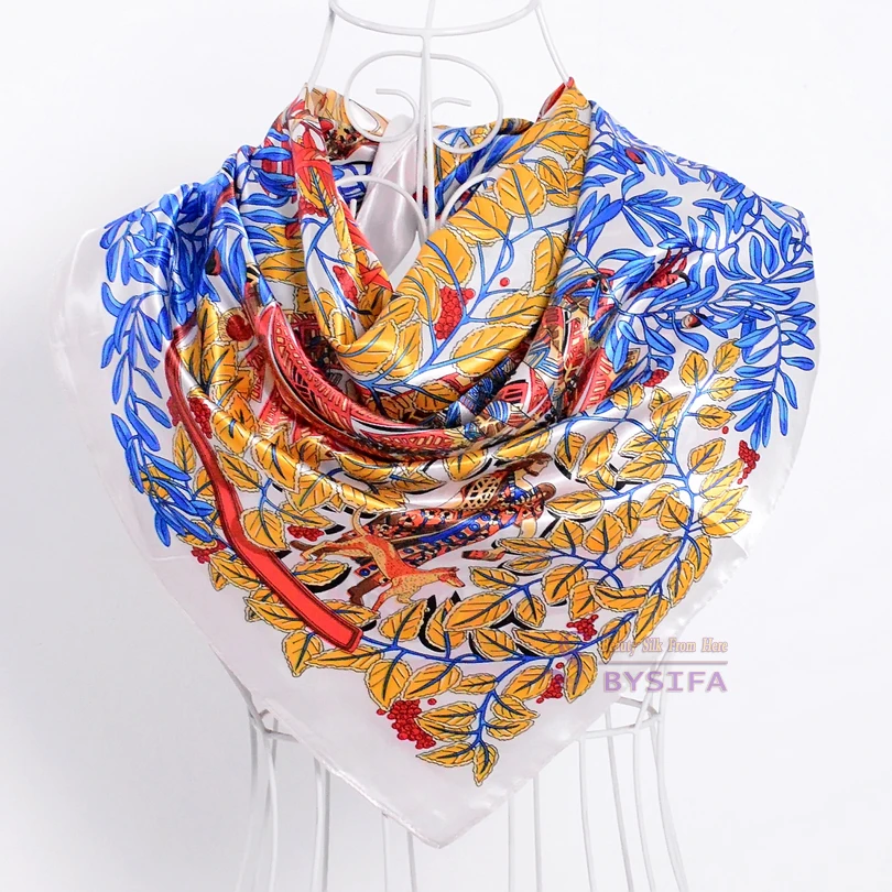 [BYSIFA] Snake Print Black Satin Square Scarves Headscarves 90*90cm Winter Women Shawls Scarves Wraps Summer Air-condition Shawl