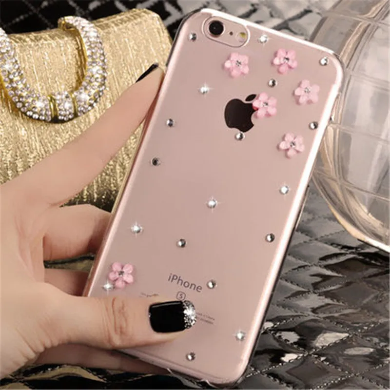 Byuoo Fashion 3D Bling Crystal Rhinestone Case for Iphone 5 7 8 6 6s Plus Clear Diamond Cover for Samsung S6 S7 S9 Note 4 5 8 9