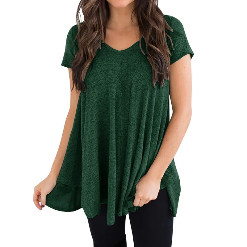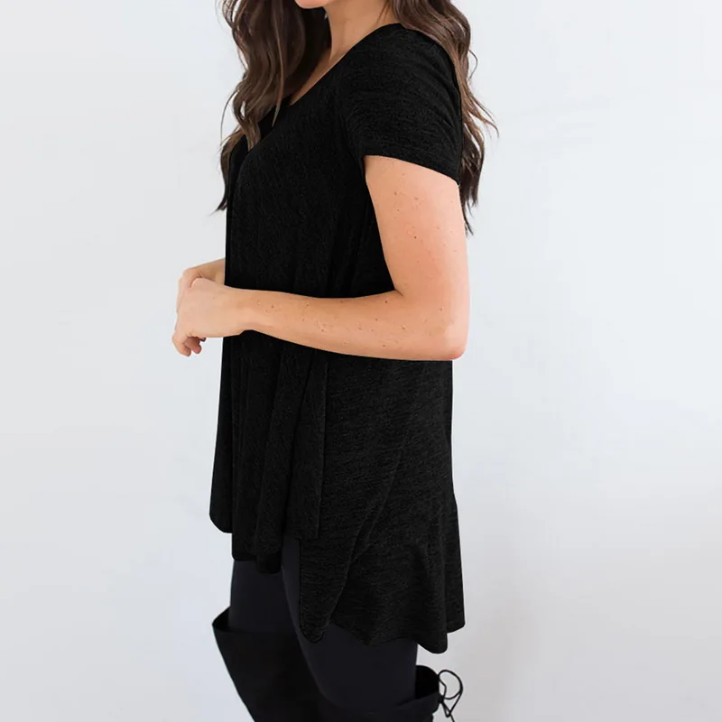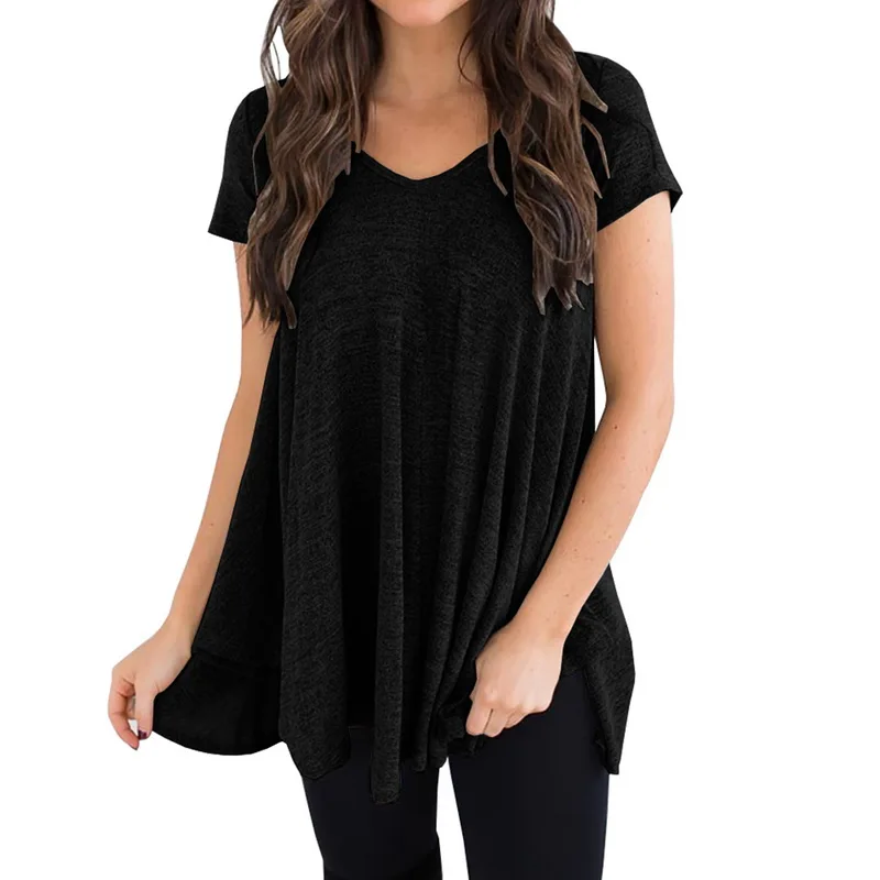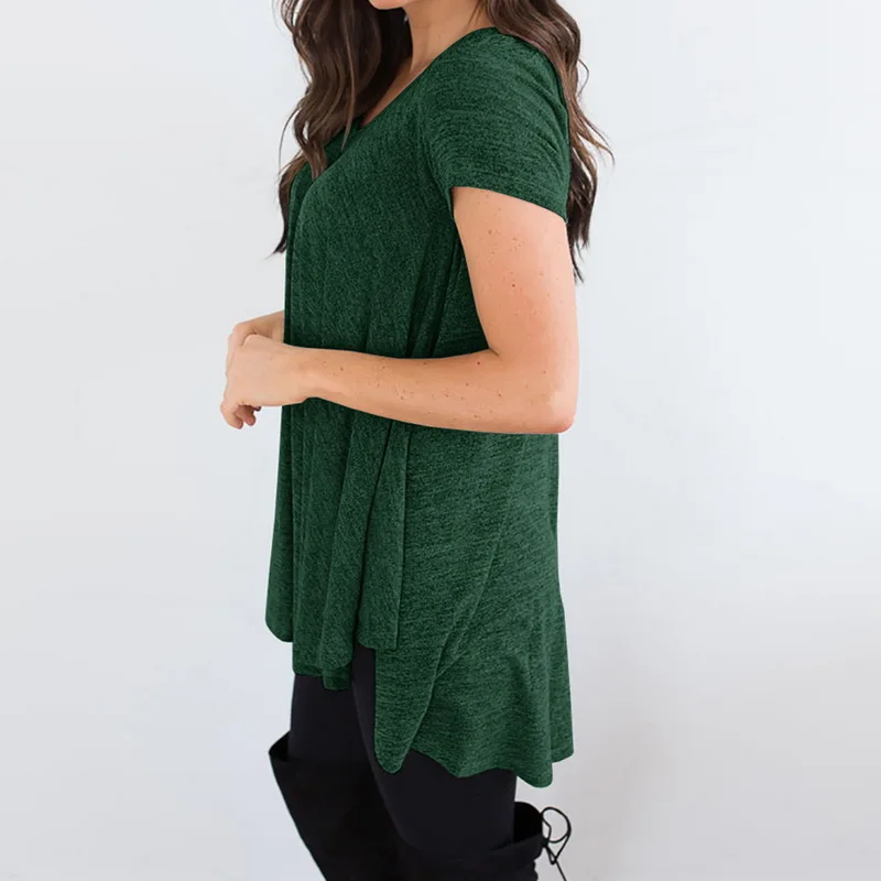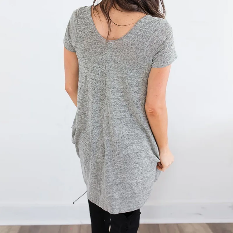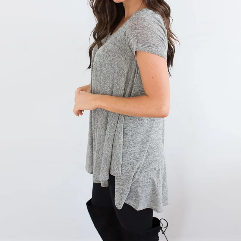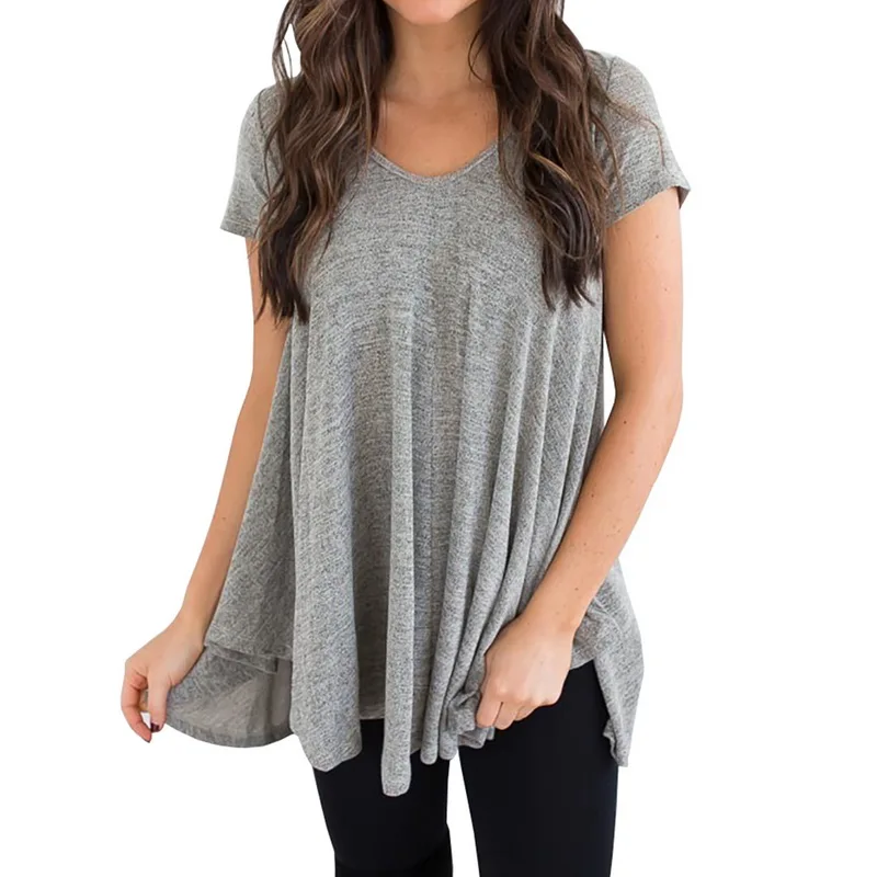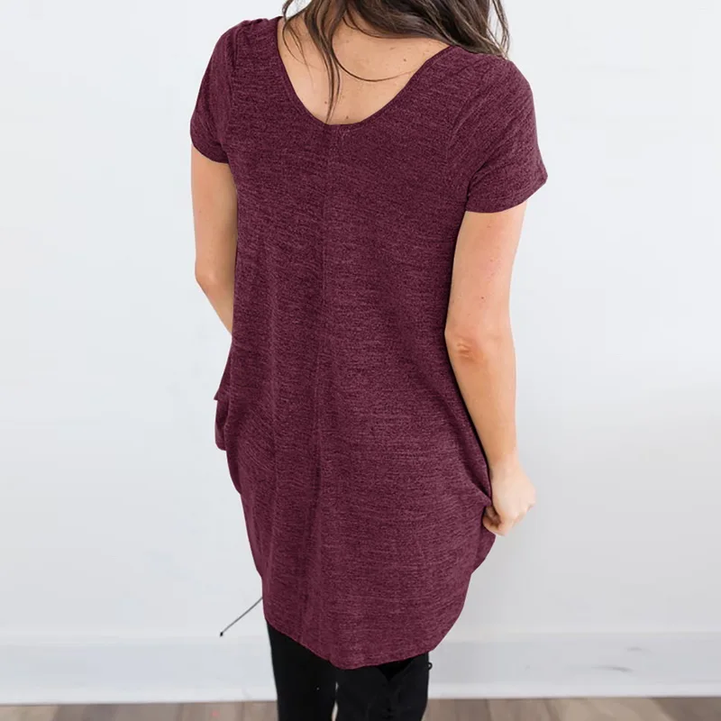 CALOFE Plus Size 2018 New Running Shirt Women T-Shirt Tops Summer Vintage Wrap Front Pullovers Short Sleeve Ruched Tshirt Tees