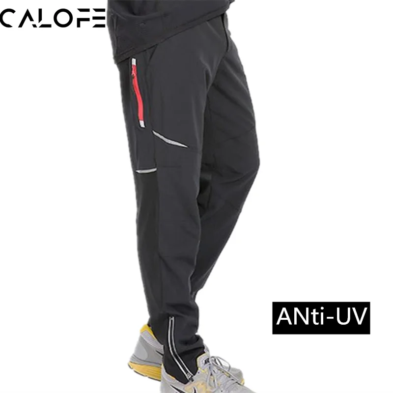 CALOFE Plus Size Sport Pants Quick Dry Elastic Running Pants Anti-UV Multi-pockets Biker Joggers Pants for Men Women Summer z30