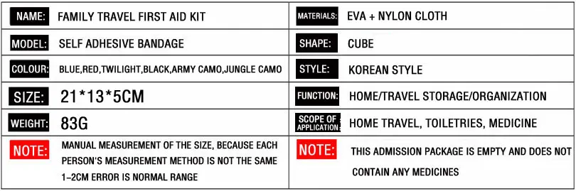 Outdoor First Aid kit Home First Aid kit Portable Car Field Supplies Self-Defense Earthquake Treatment Emergency Medical KitsUSD 7.00/piece