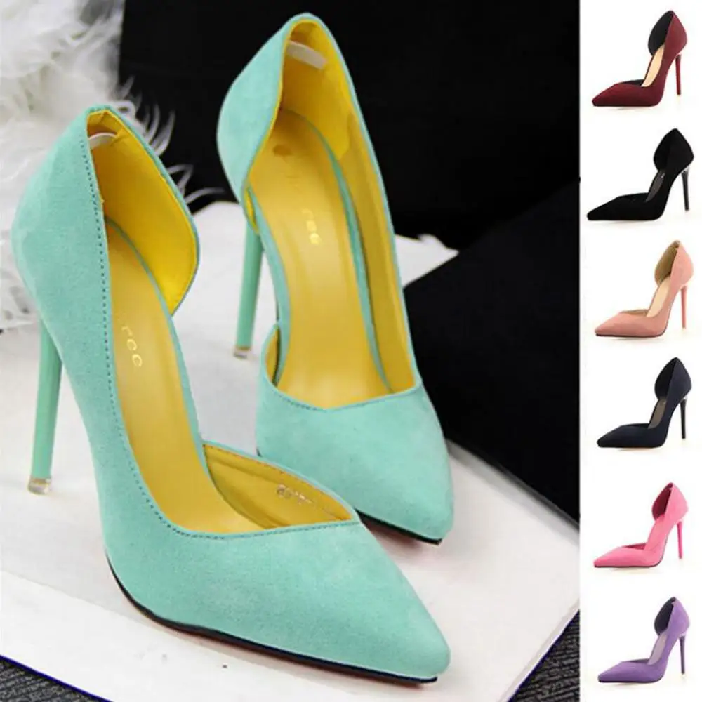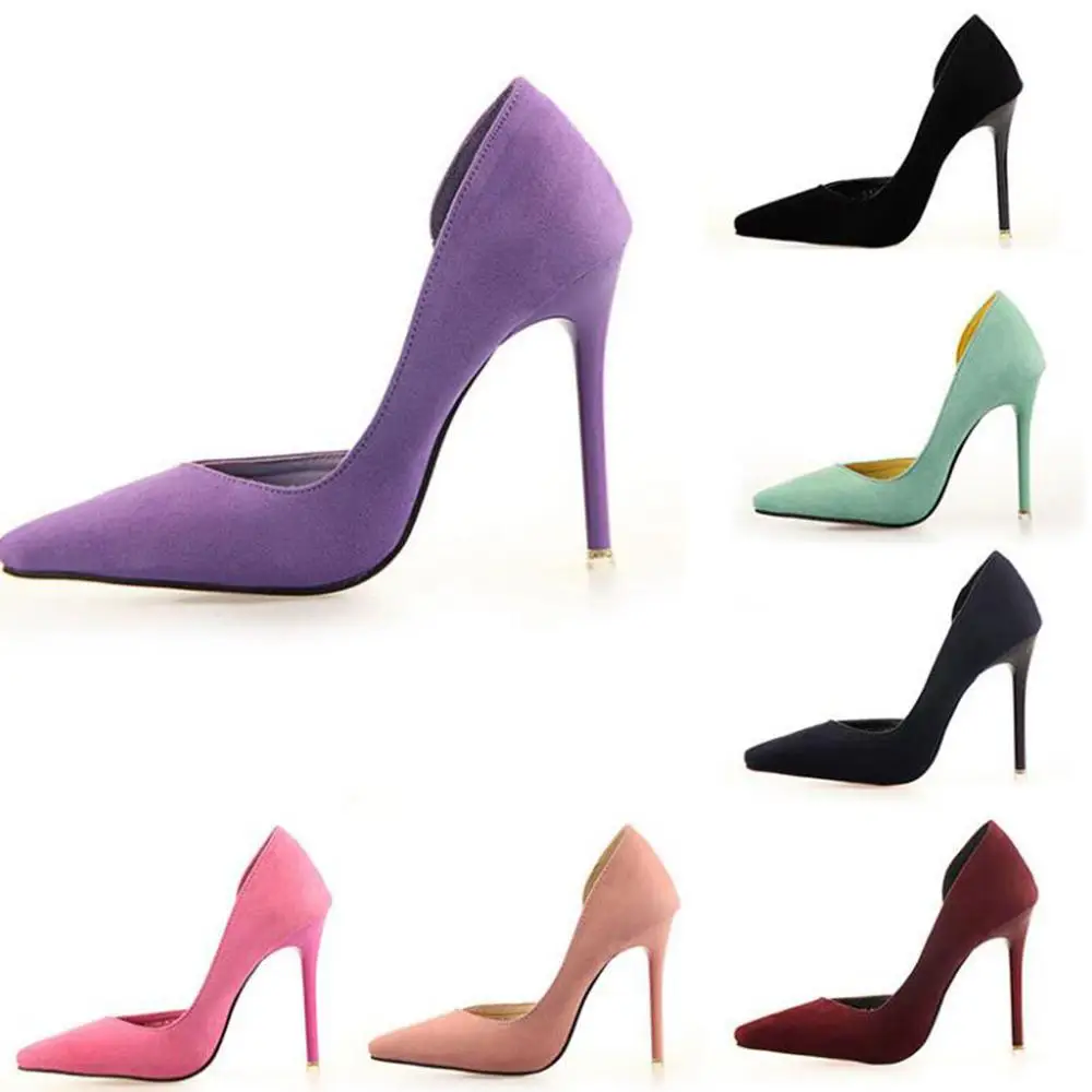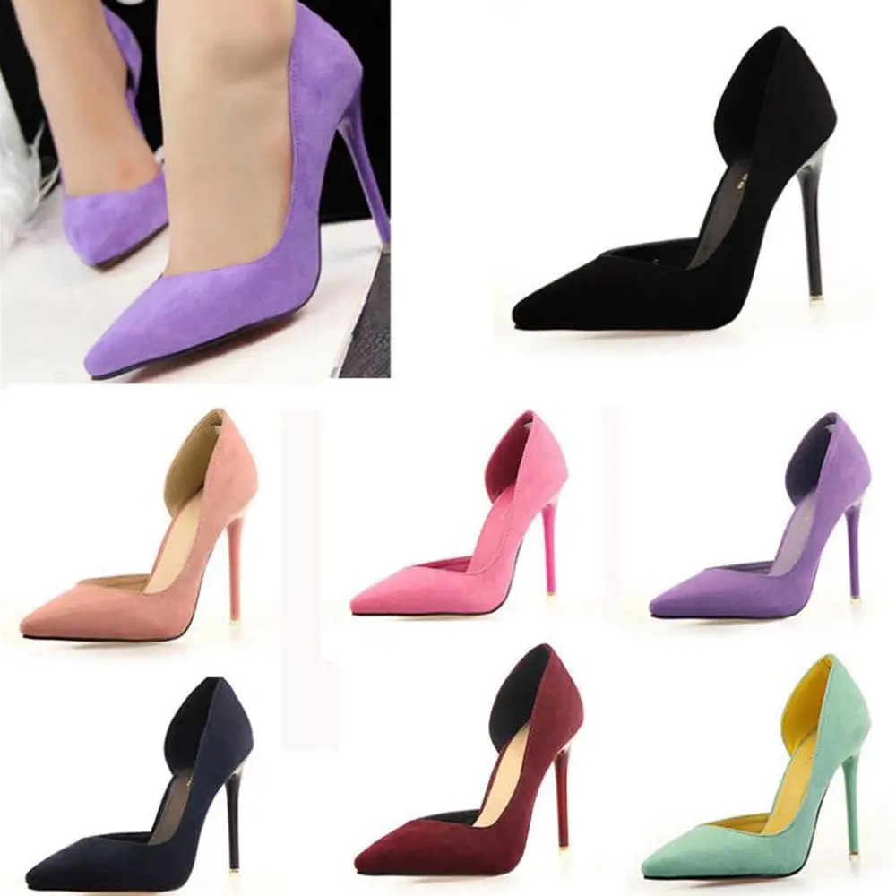 Candy Color Women Wedding Shoes Suede Pump High Heels OL Lady Office Shoes Pointed toe Chic Court Stiletto Party Classic Shoes