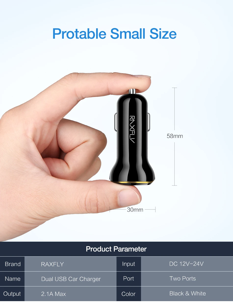 • Name: RAXFLY Dual Ports USB Car Charger