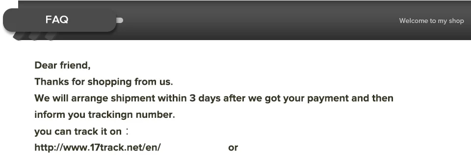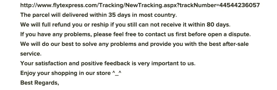 • If you did not receive the product within the guaranteed time( 45 days not including 2-5 day processing) you can request a refund or a reshipment.