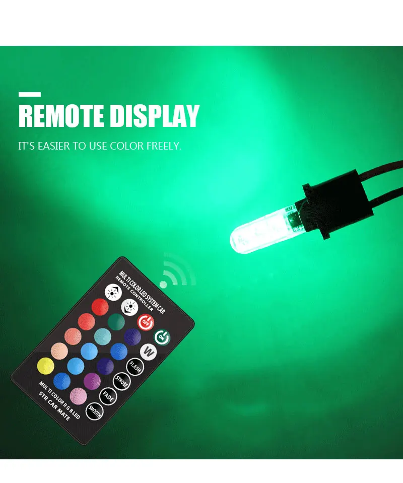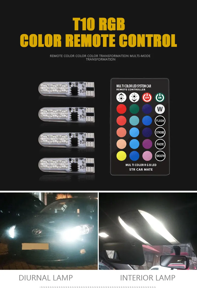 Car RGB LED 12V T10 LED RGB 5050 SMD Signal Lamp Reading Wedge Light Car Interior Decorative Lights for Auto Remote Controller