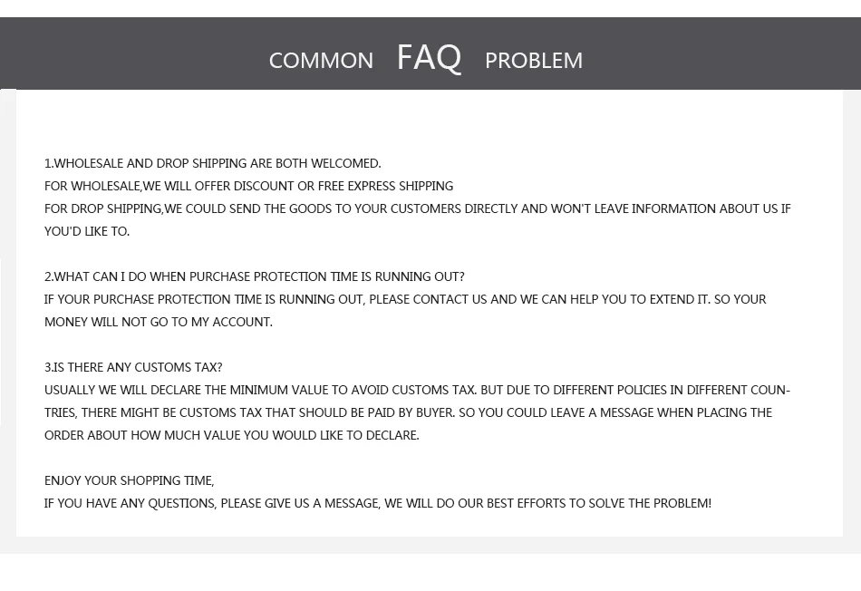 We are not responsible for any custom fees once the items have shipped. By purchasing our products, you consent that one or more packages may be shipped to you and may get custom fees when they arrive in your country.