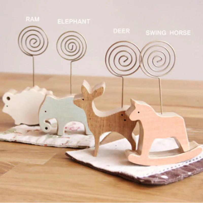 Name:Card Holder 1pc Wood Stand Ram Elephant Horse Deer