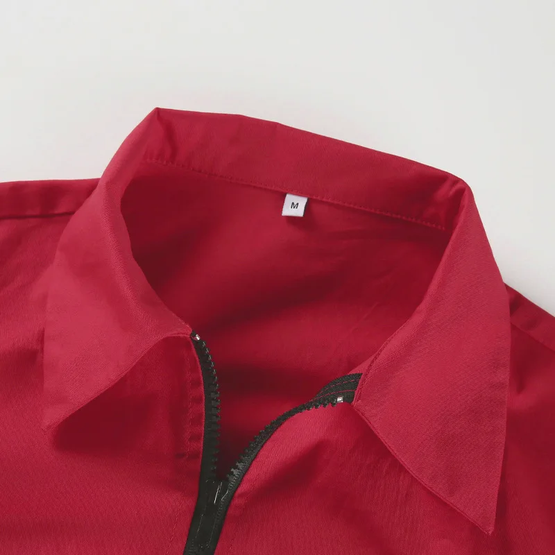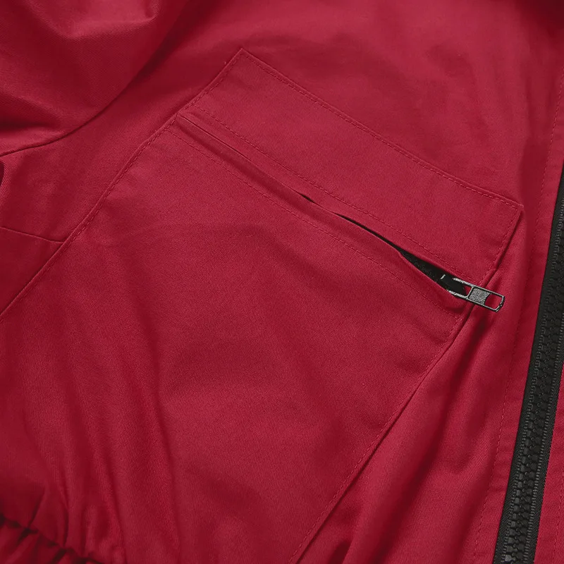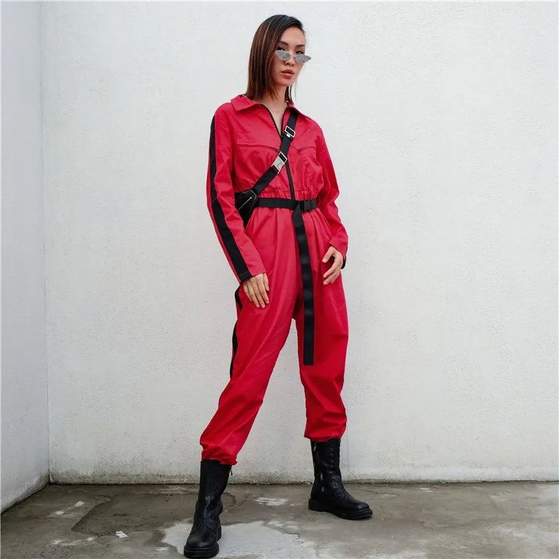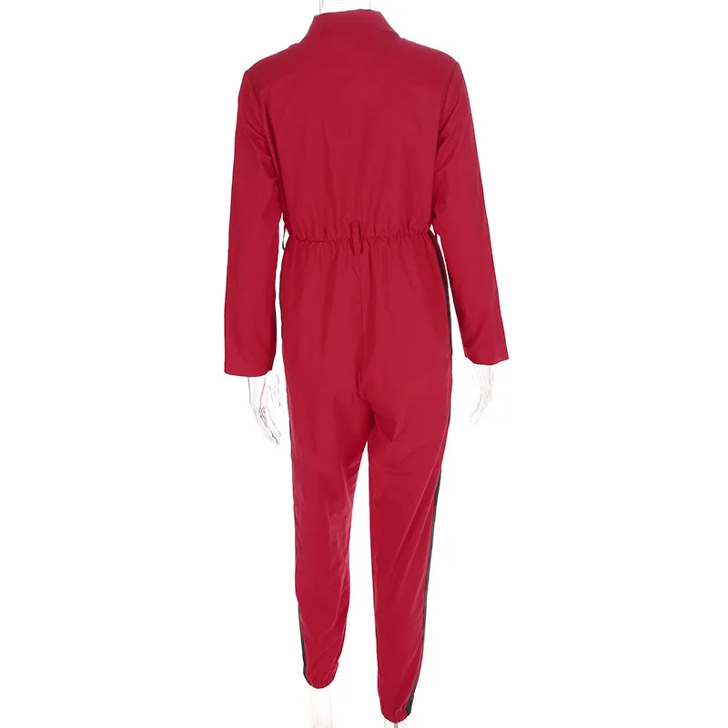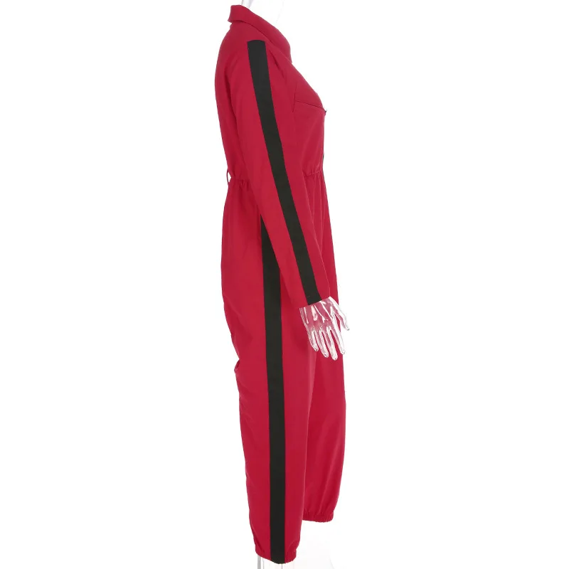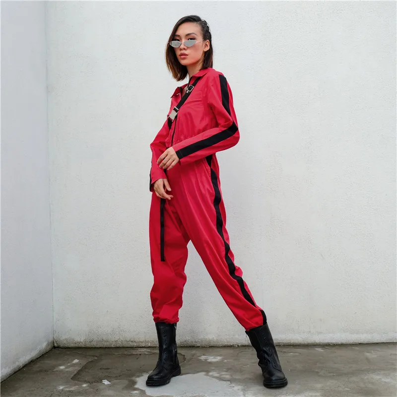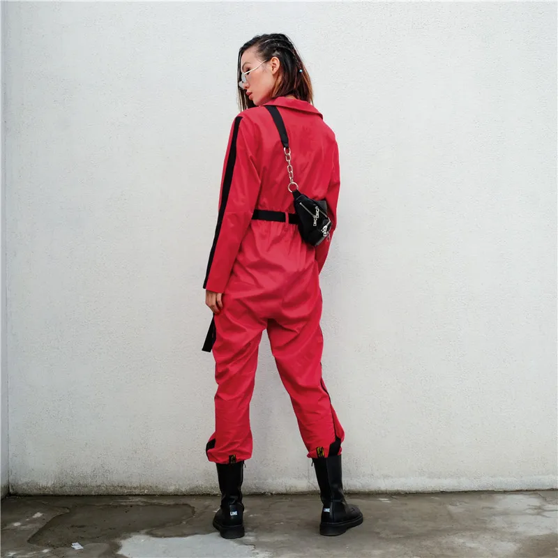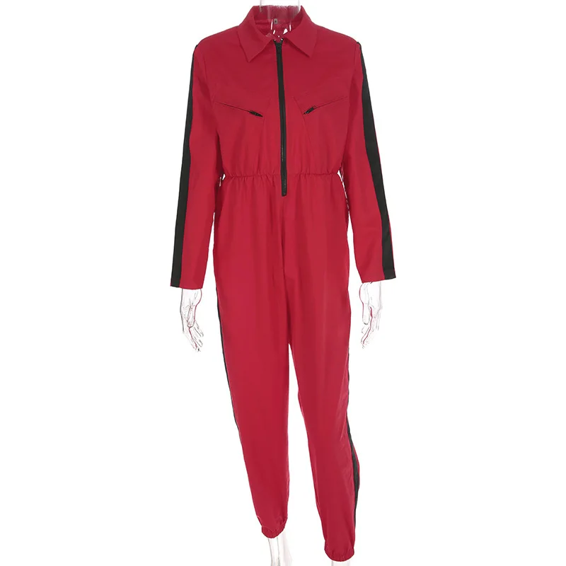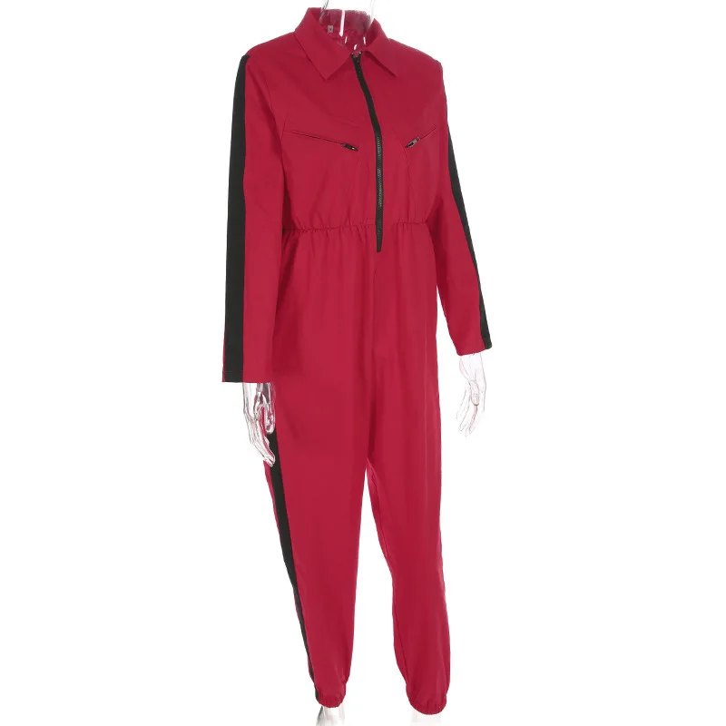Cargo Red Loose Jumpsuit 2018 Women Long Pants Long Sleeve Pocket Streetwear Sexy Jumpsuit Zipper Up Turtleneck Patchwork Romper