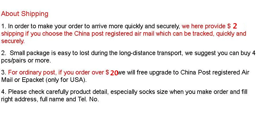 Packages from our warehouse in China will be shipped by ePacket or EMS depending on the weight and size of the product. Packages shipped from our US warehouse are shipped through USPS.