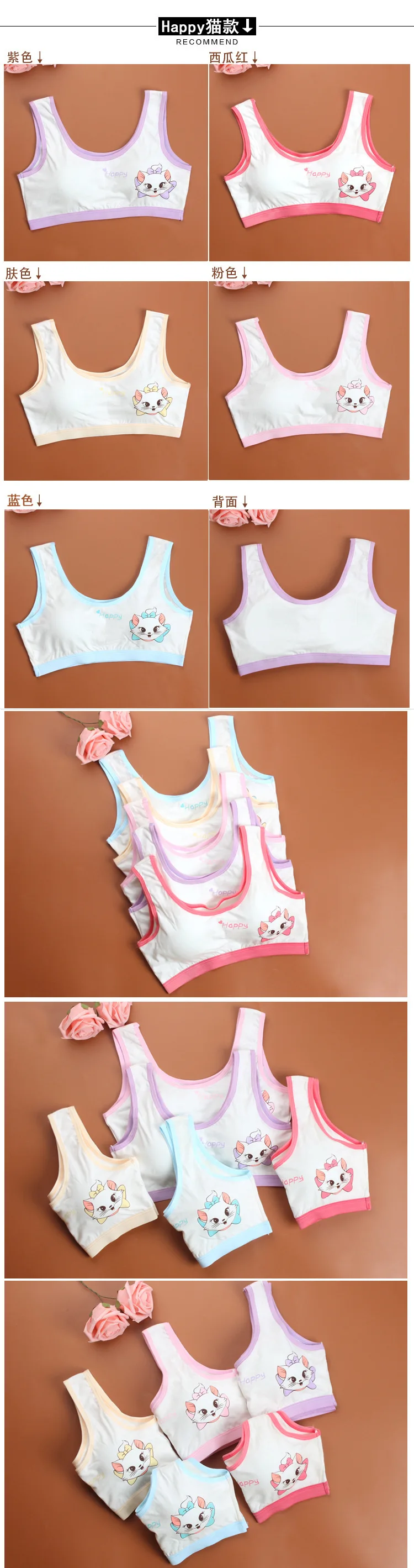 Cartoon Cat Pattern Girls Training Bras Kids Soft Underwear Girls Accessories Breathable Children Bras for Teen Girl YFP78