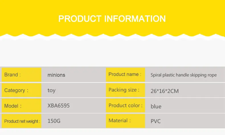 Cartoon Minion Children’s Kids Jump rope Children Jump Rope Training Soft PVC Skip Rope for Kids Fast Skipping