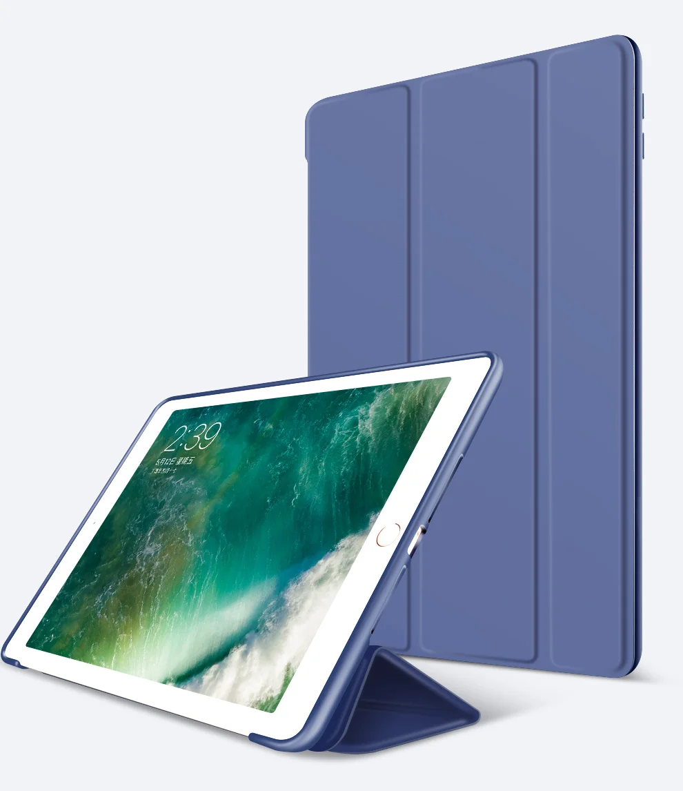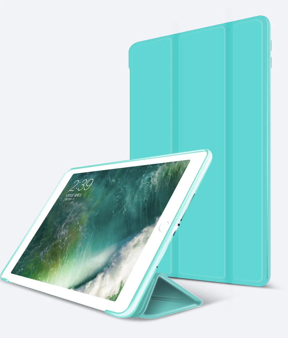 Case for New iPad 9.7 inch 2017 2018 Release model A1822 A1823 A1893, Soft silicone bottom+PU Leather Smart Cover Auto Sleep