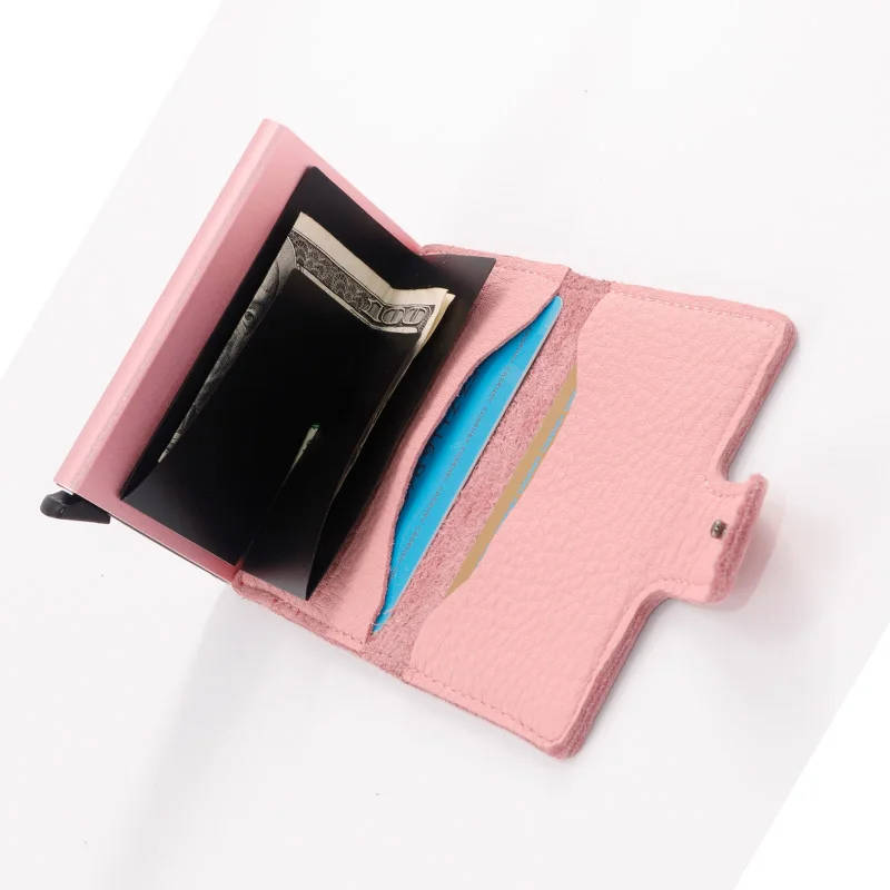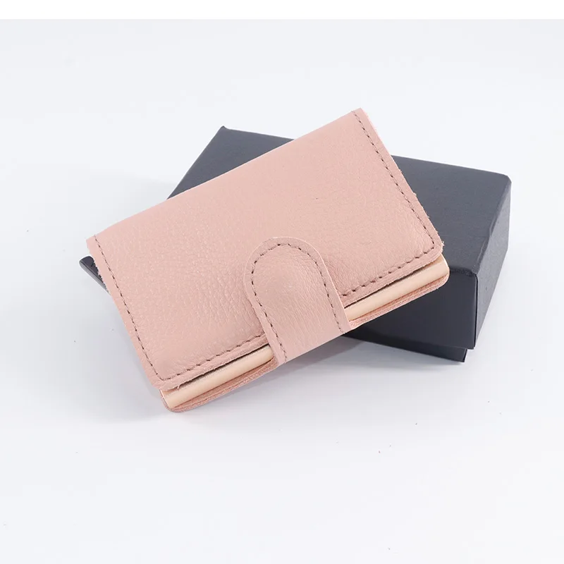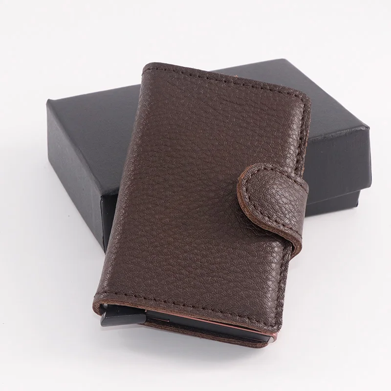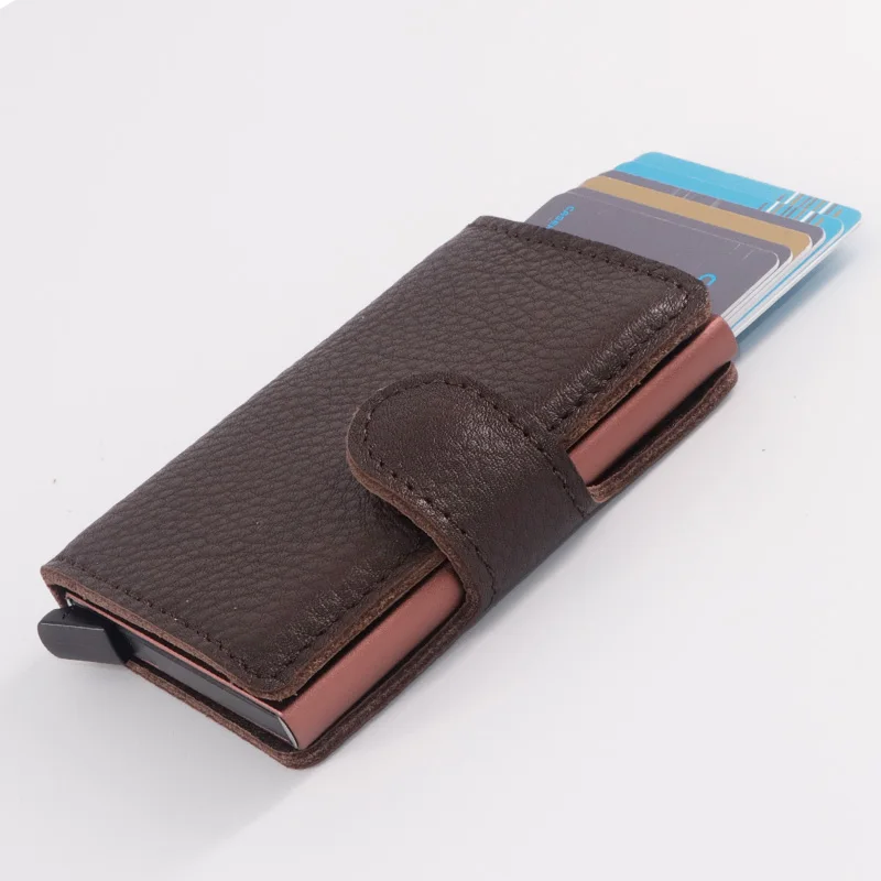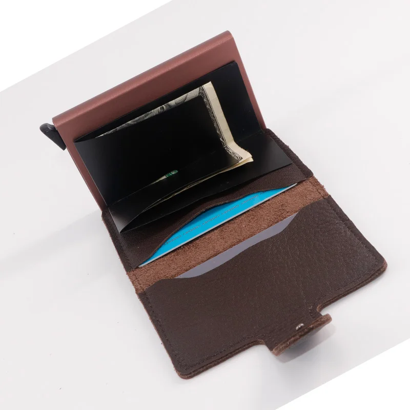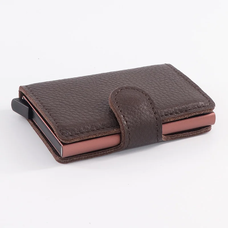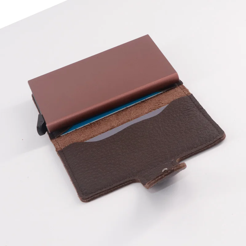 Casekey Natural Pattern Brown Genuine Leather Wallet Front pocket design With Single brown Alluminum Credit Card ID Holder