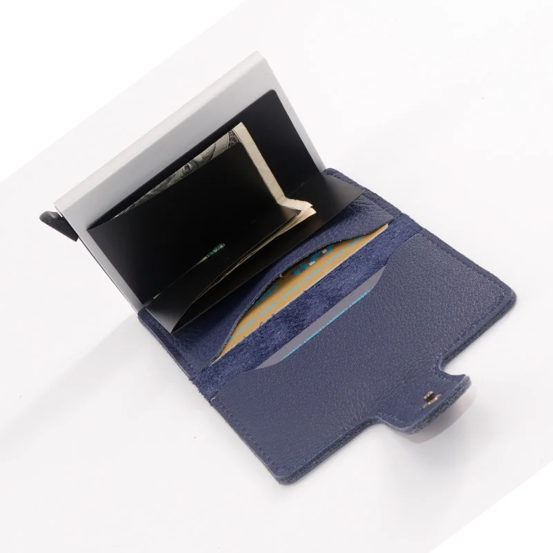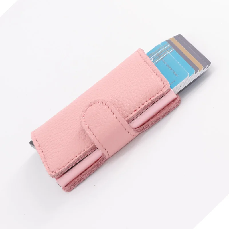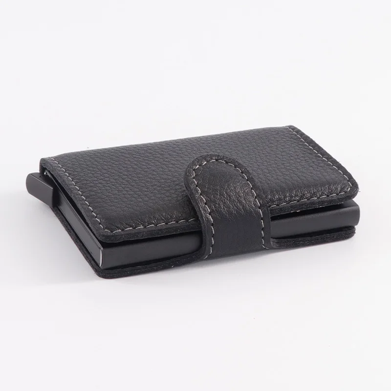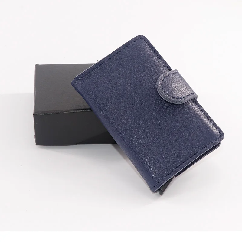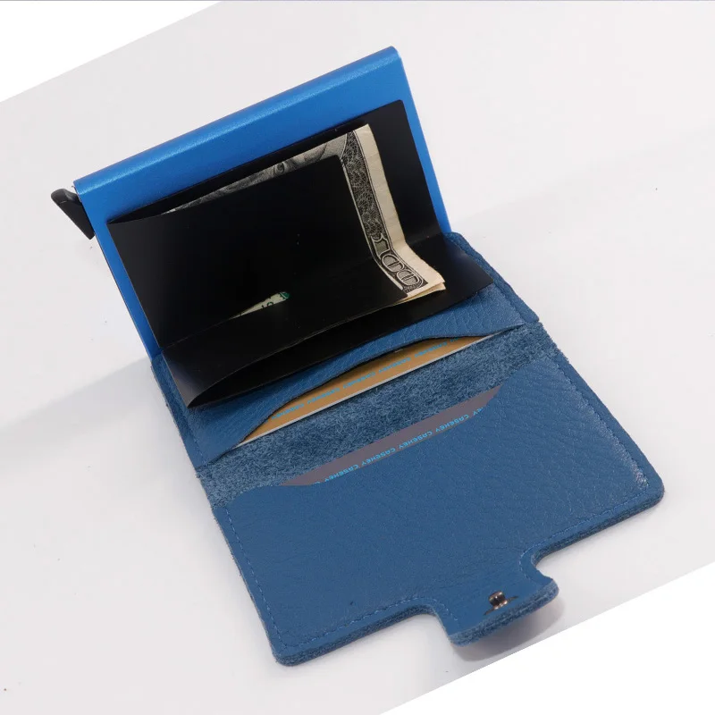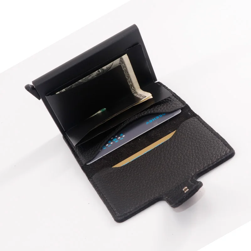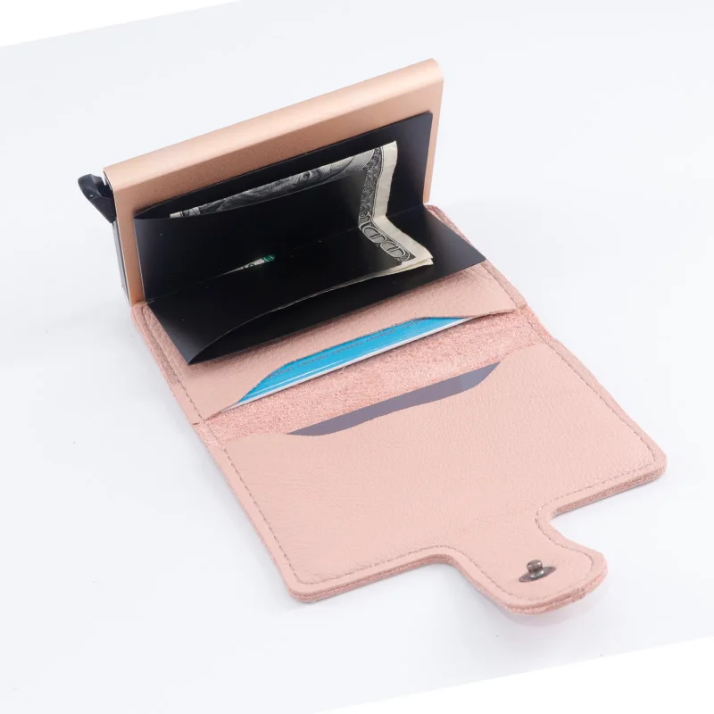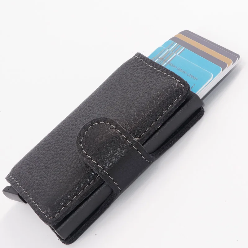 Casekey Natural Pattern Brown Genuine Leather Wallet Front pocket design With Single brown Alluminum Credit Card ID Holder