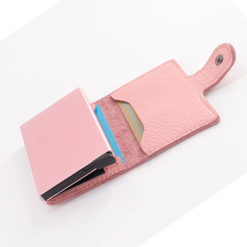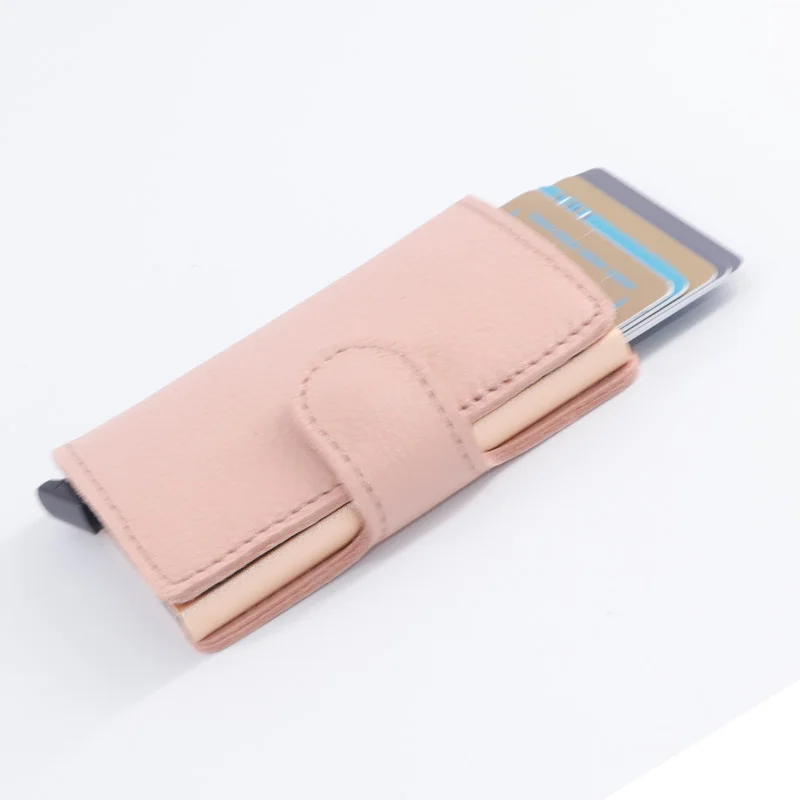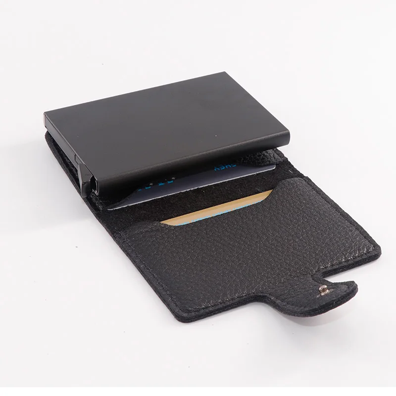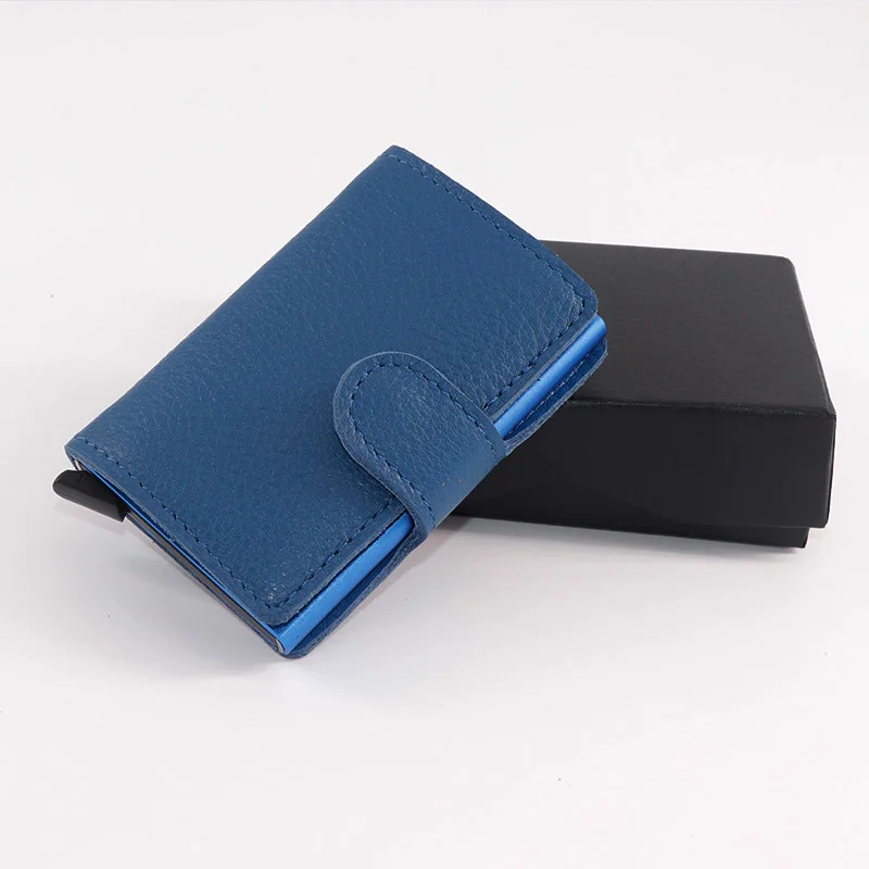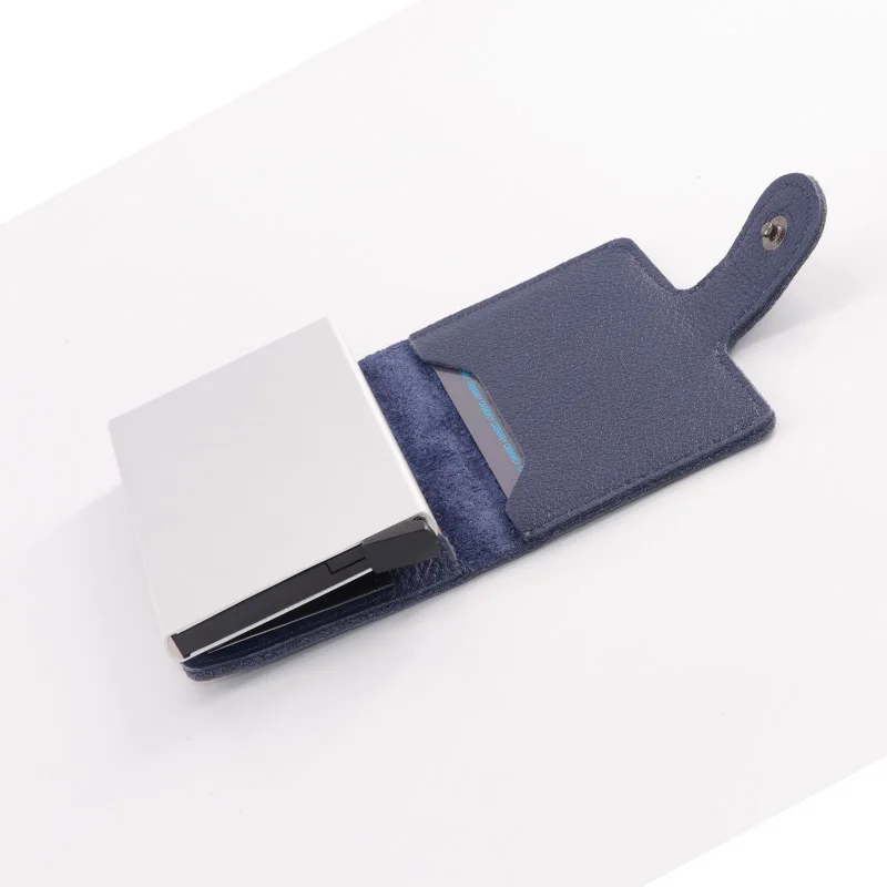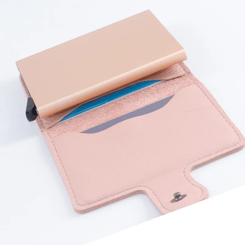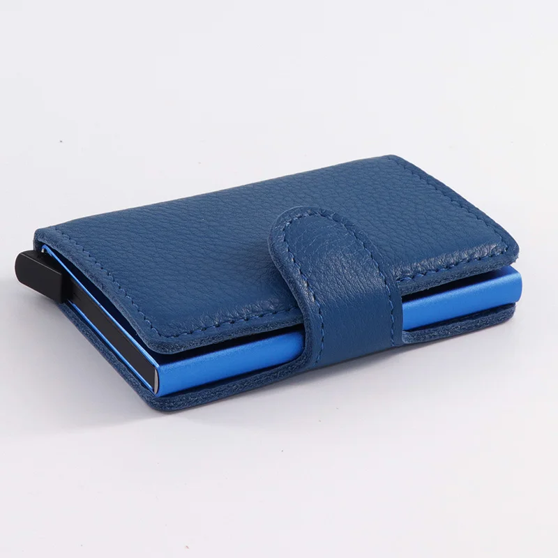 Casekey Natural Pattern Brown Genuine Leather Wallet Front pocket design With Single brown Alluminum Credit Card ID Holder