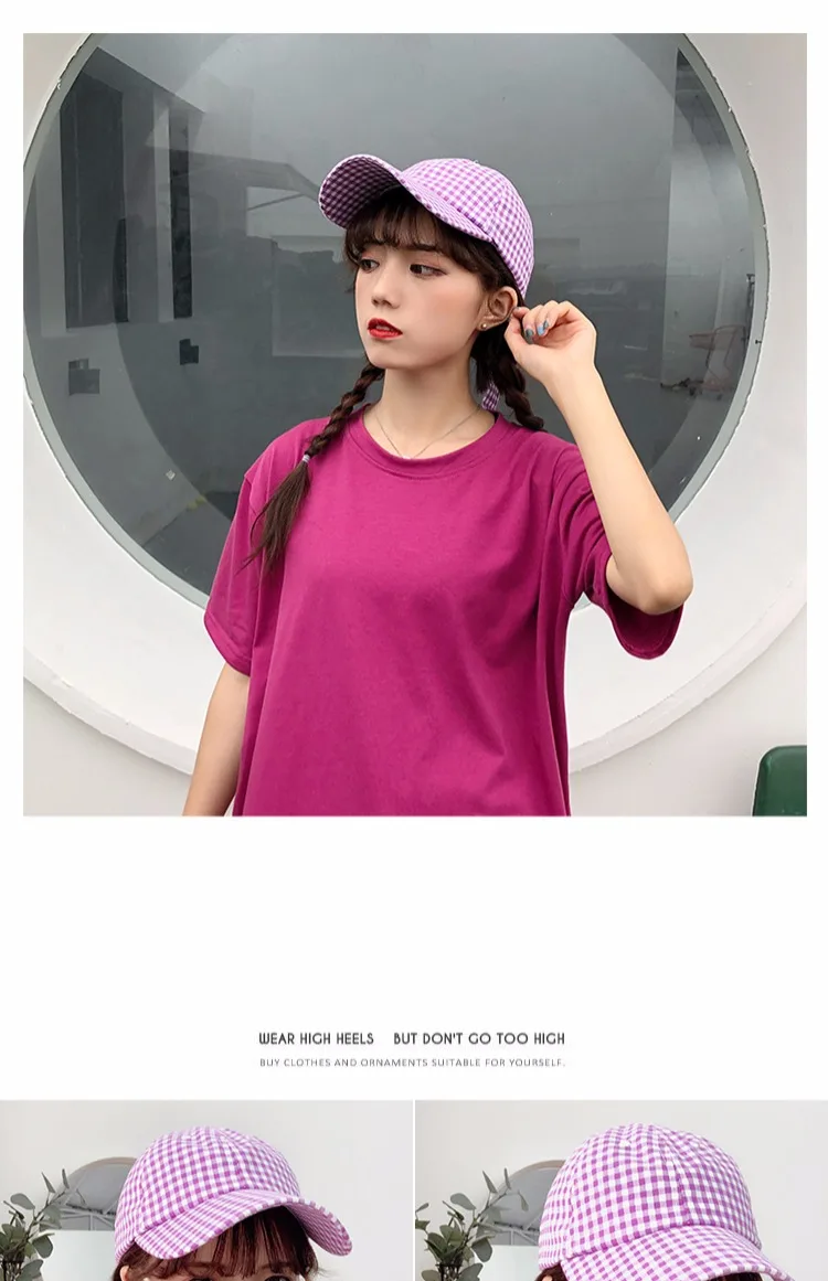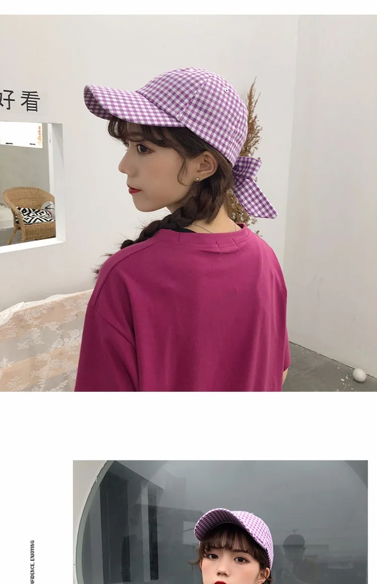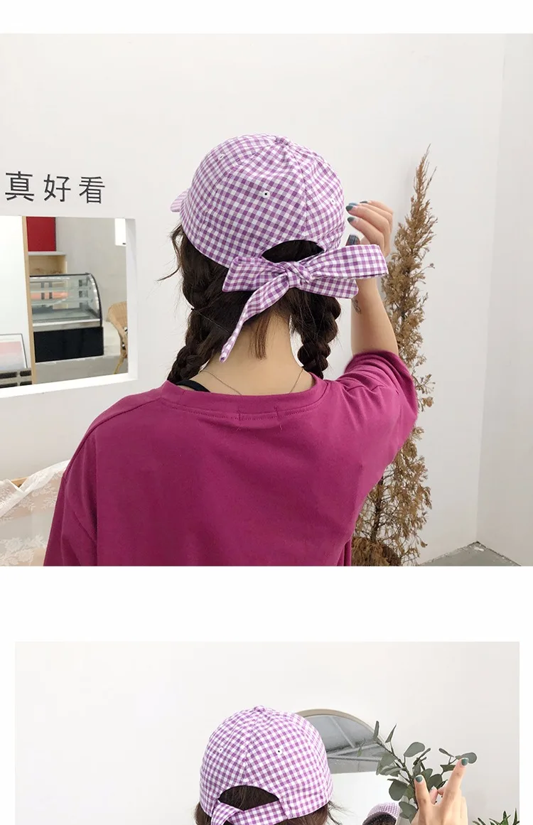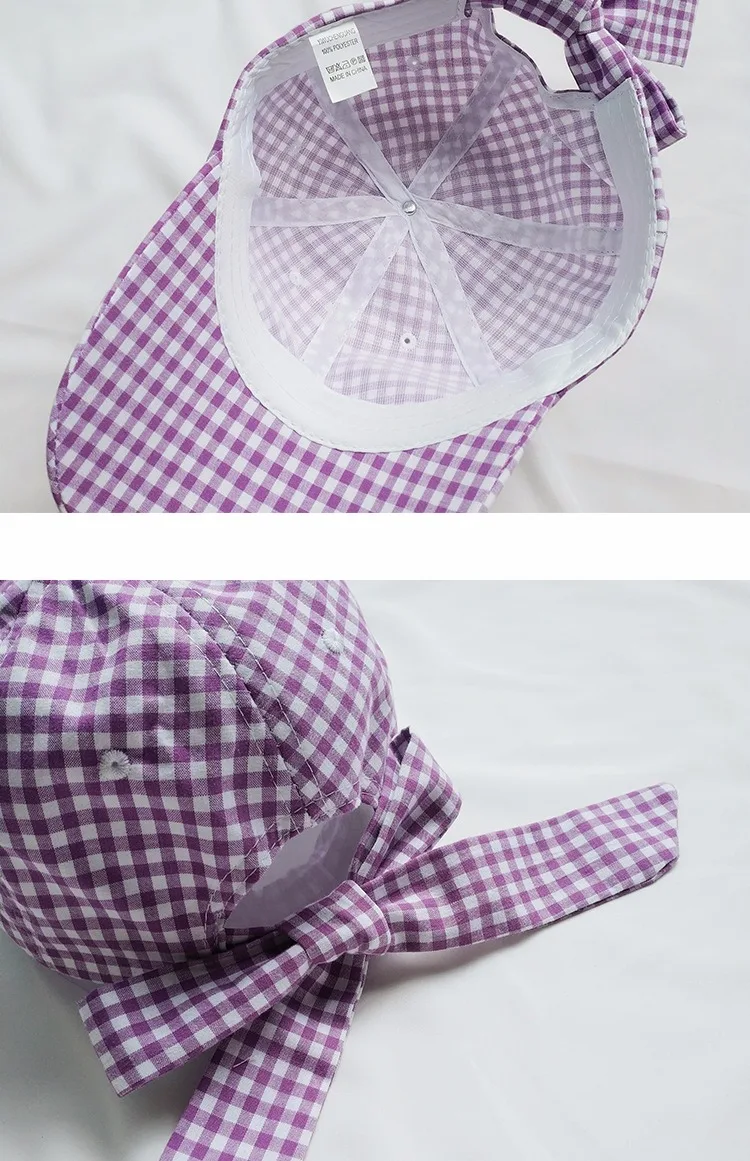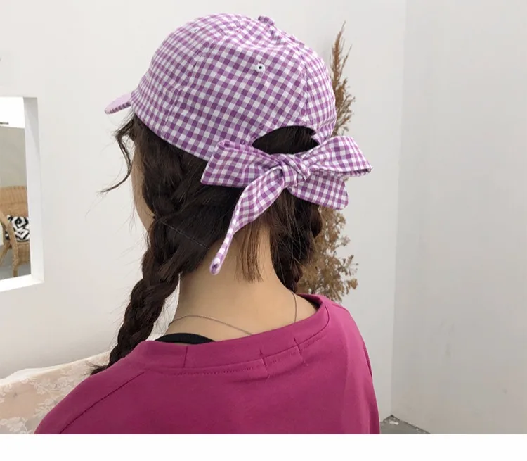Casquette Femme Japanese Fresh Light Purple Hats Women Summer Baseball Caps Ulzzang Harajuku Plaid Lovley Snapback Hat Girl Cap