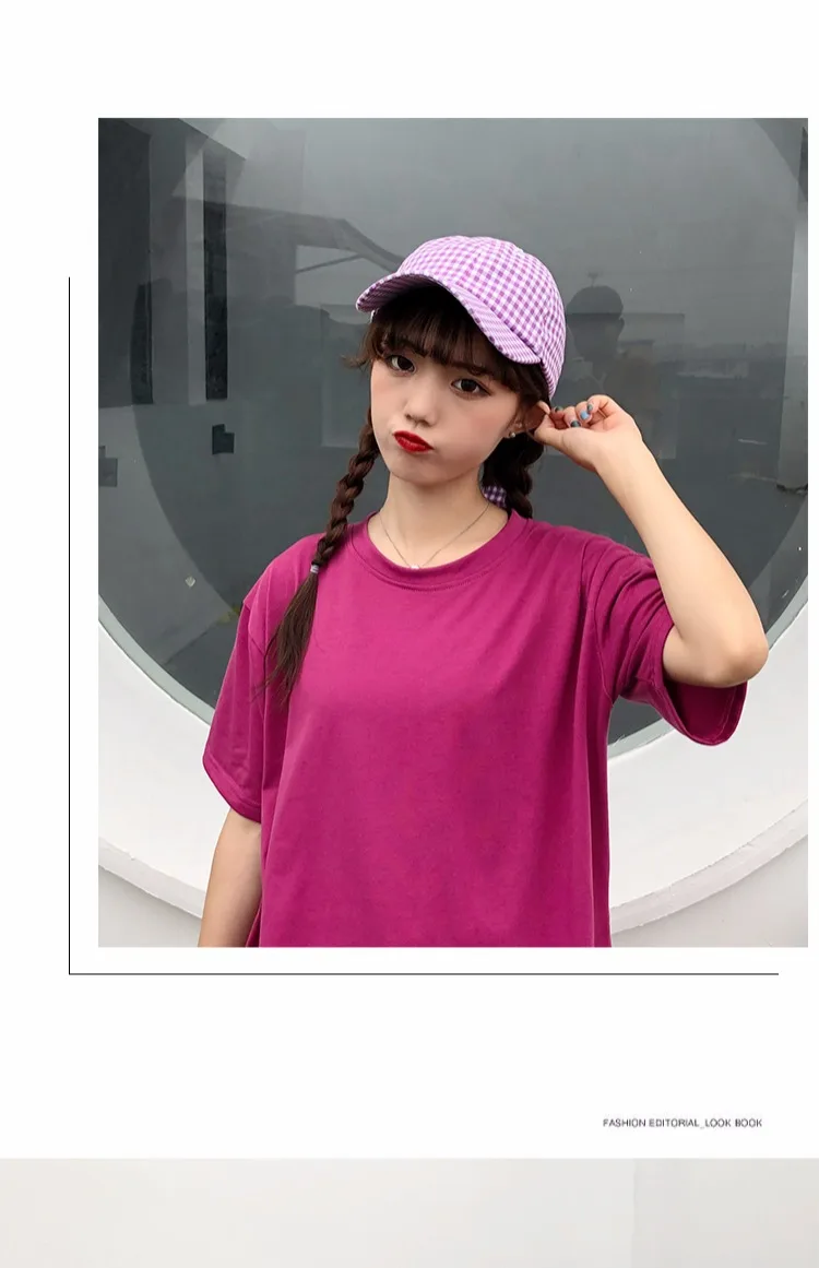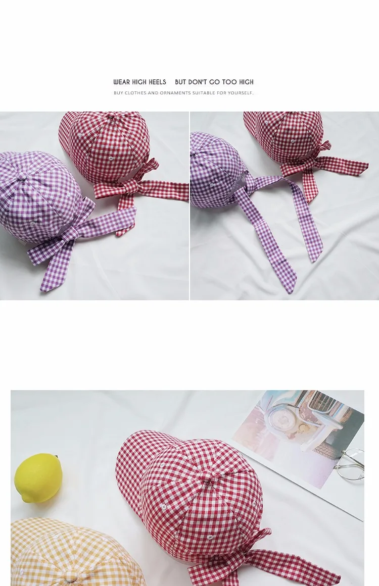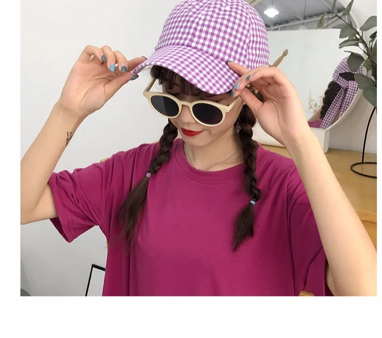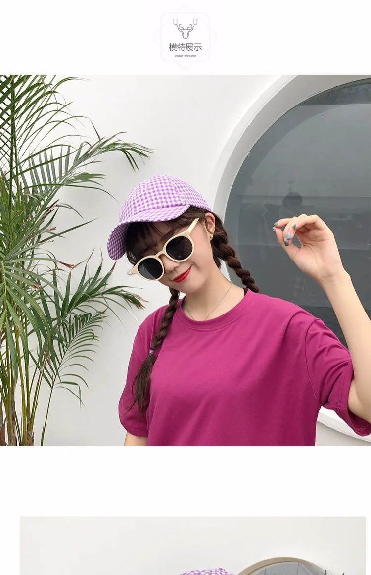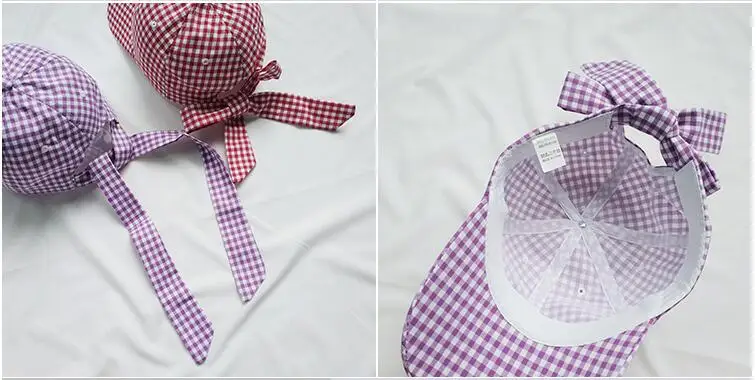 Casquette Femme Japanese Fresh Light Purple Hats Women Summer Baseball Caps Ulzzang Harajuku Plaid Lovley Snapback Hat Girl Cap