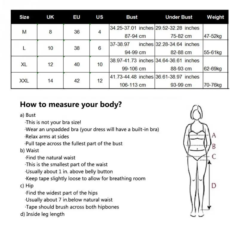 M:Bust:87-94cm/34.25-37inch;Under Bust:75-82cm/29.52-32.28inch ; Weight:47-54kg