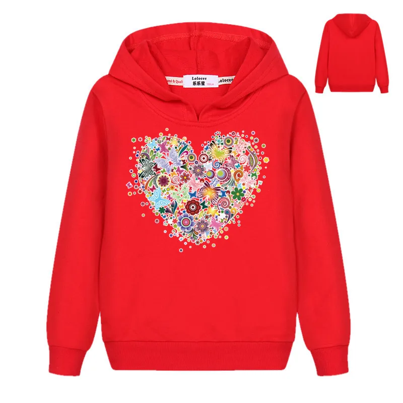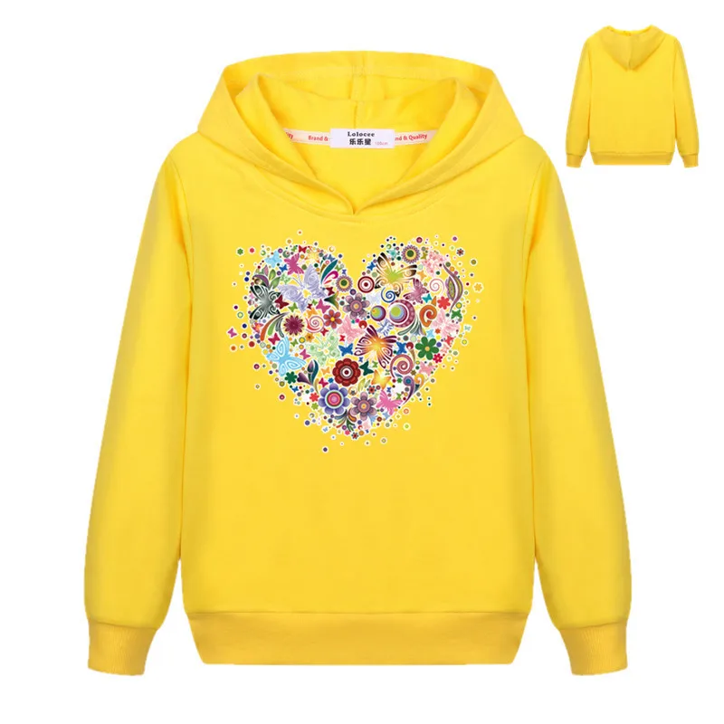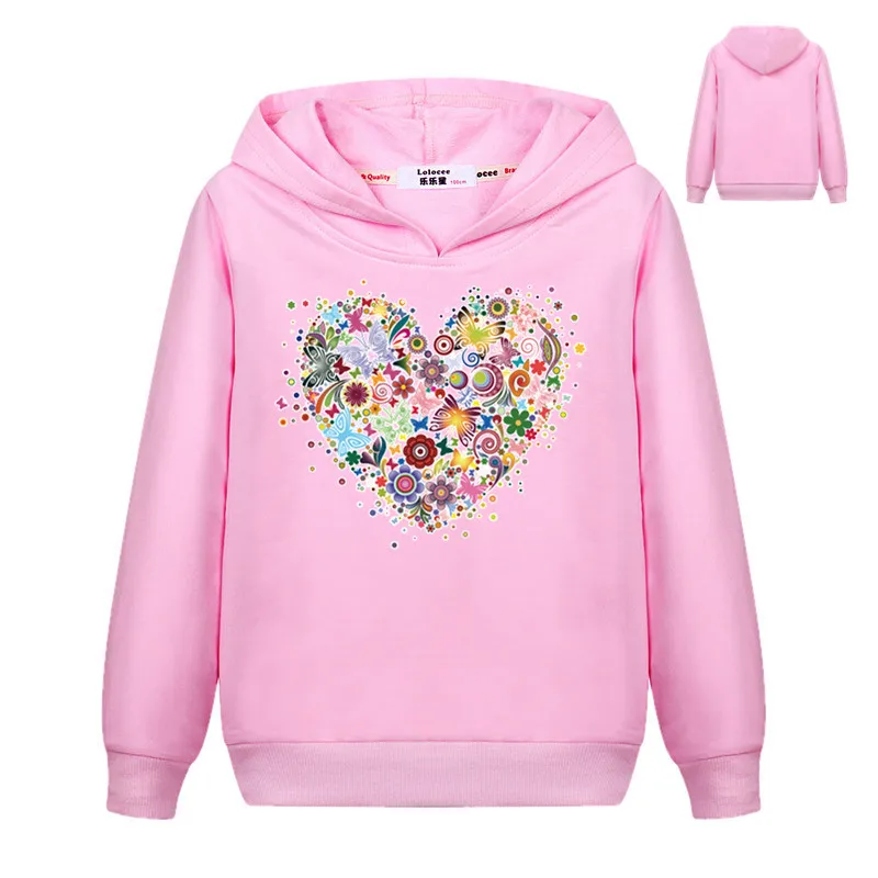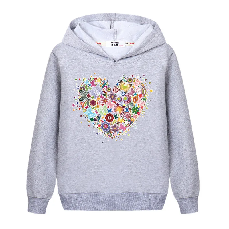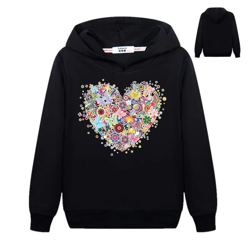 Casual Girls Colorful Flowers Print Long Sleeve Hooded Sweatshirt Loose Cotton Hoodies Pullovers Tracksuits Fashion Clothes