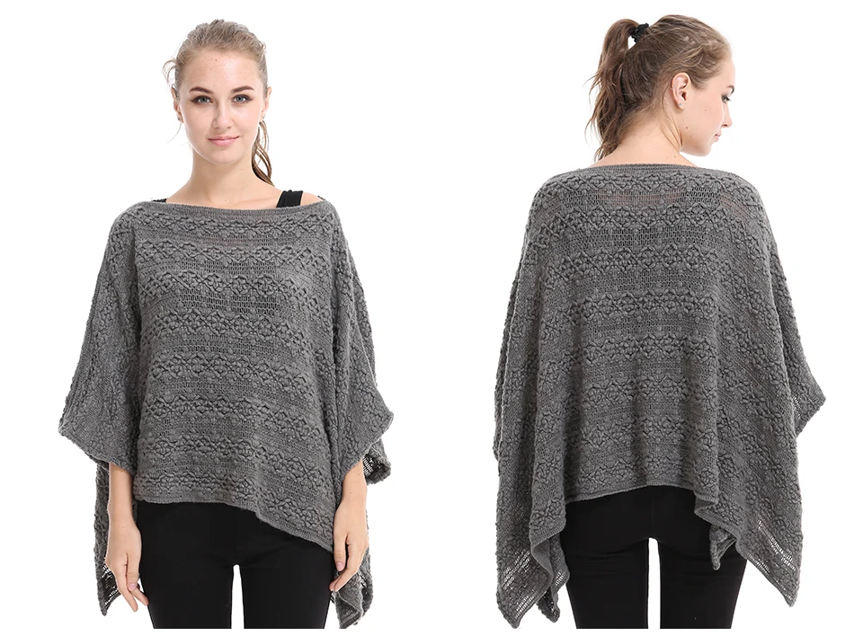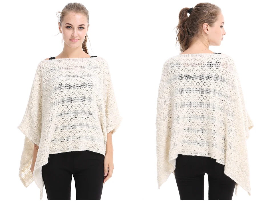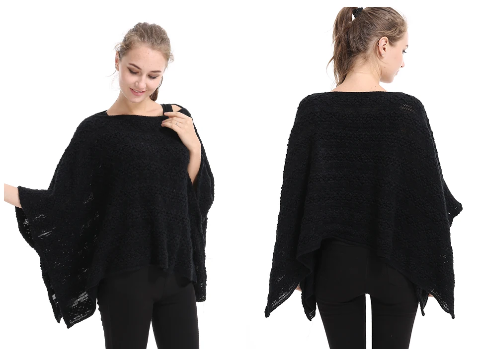 Casual Hollow Sweater Women Fashion Poncho V Neck Solid Kintted Pullover Women Sleeveless Poncho And Capes PH17