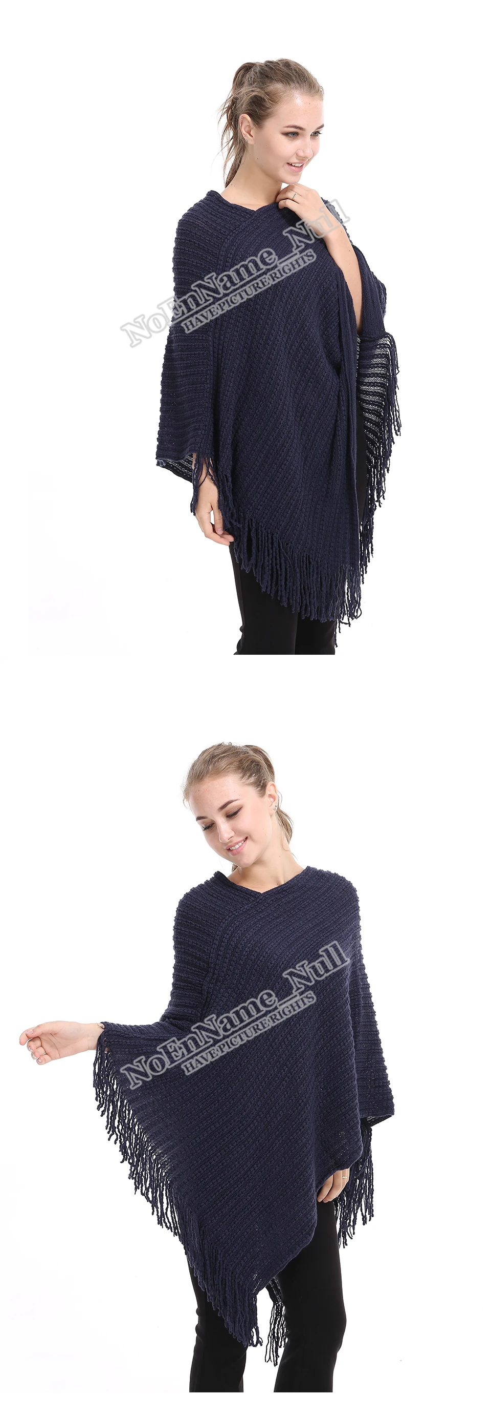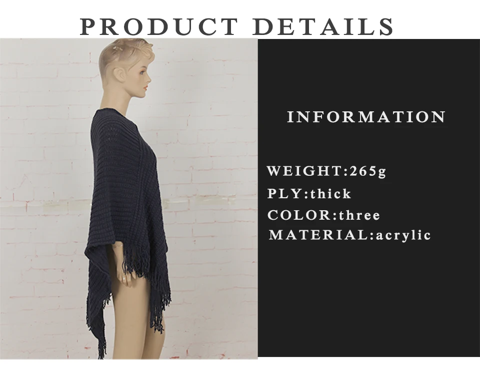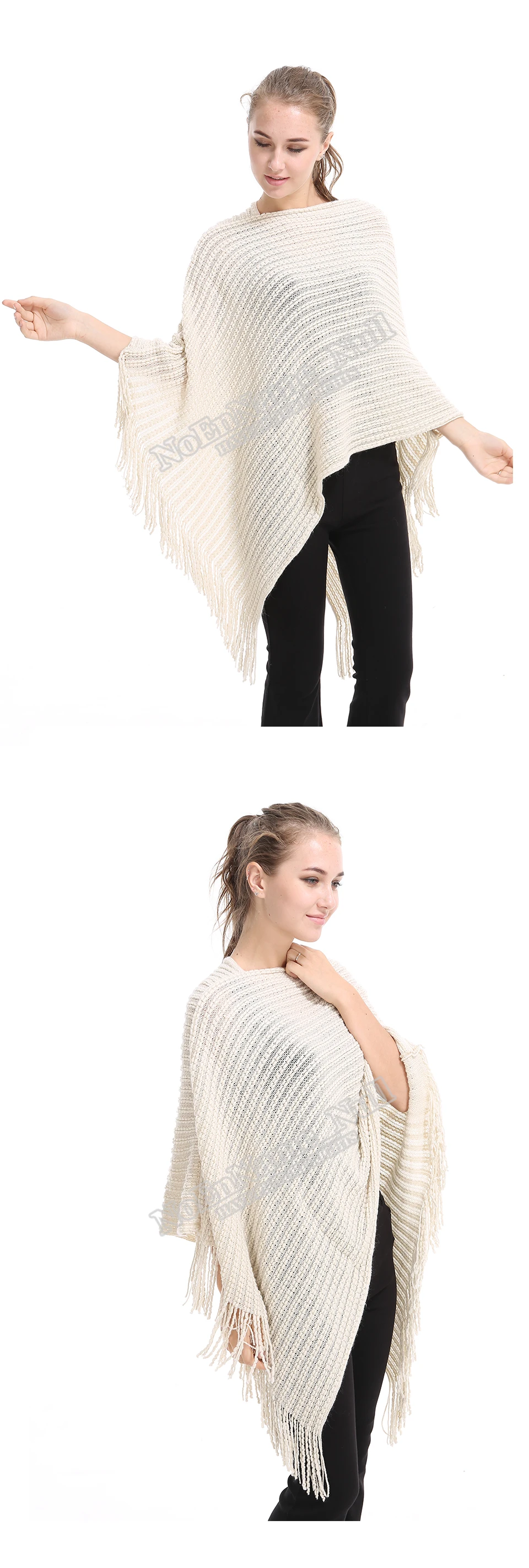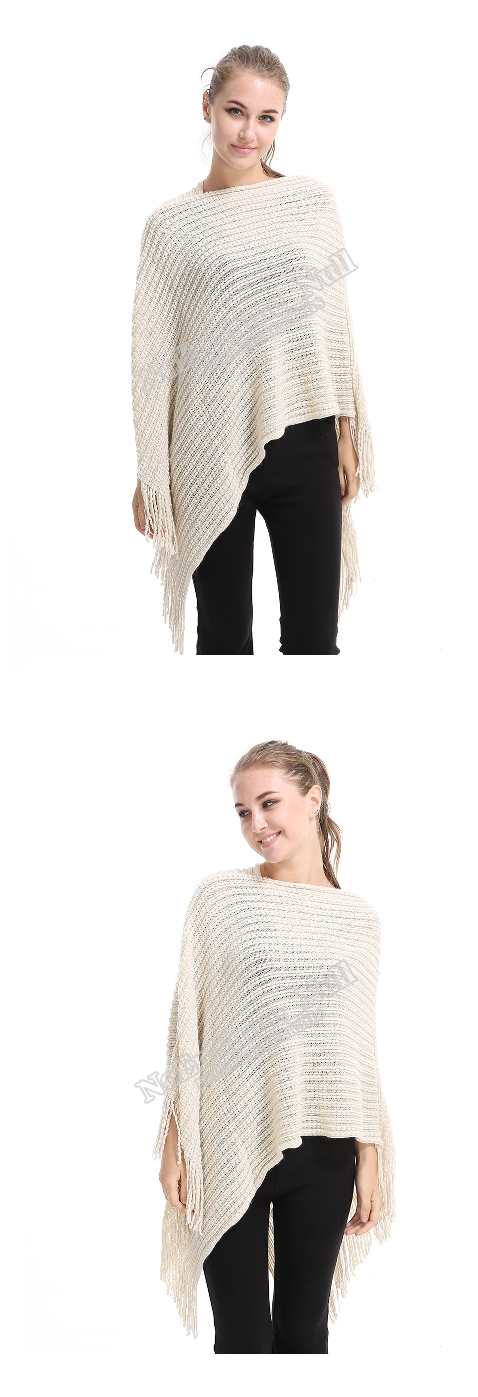 Casual Knitted Women Poncho Plus Solid Striped Sweater Winter Tassel Thick Warm Sweaters Batwing Sleeve Poncho And Cape PH09