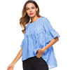 Casual Loose Plaid Blouse Spring Summer 2018 New Arrival Flare Half Sleeve Women Tops Asymmetrical Ruffle Womens Blouses Shirts