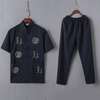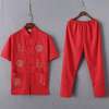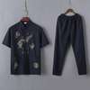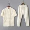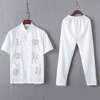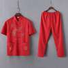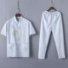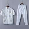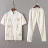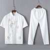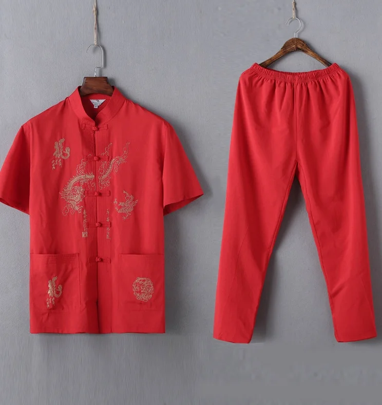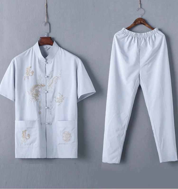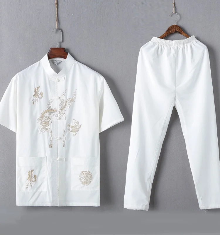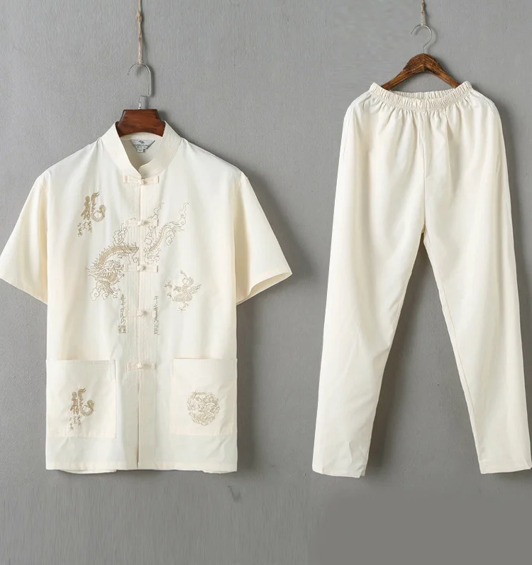 Casual Mandarin Collar Short Sleeve Shirt&Pant For Men Oriental Male Dragon Tang Suit Chinese Traditional Kung Fu Clothing