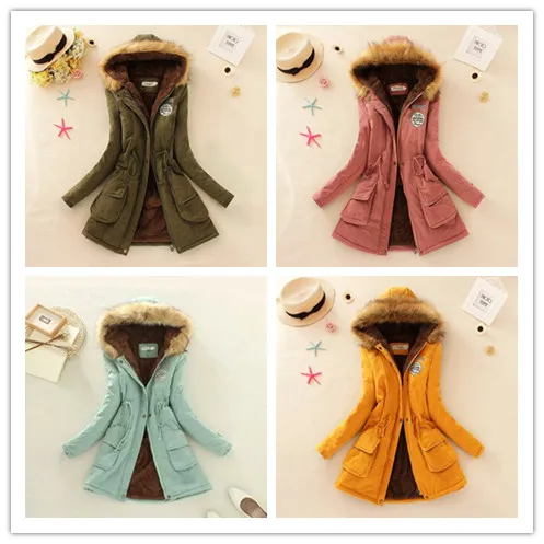 Casual Women Thick Parkas Army Green Pluse Size XXXL Muti-Color Female Outwear Coat Long Lady Jacket