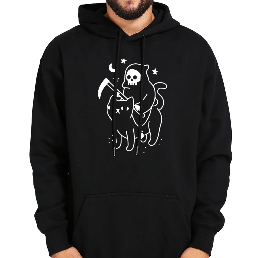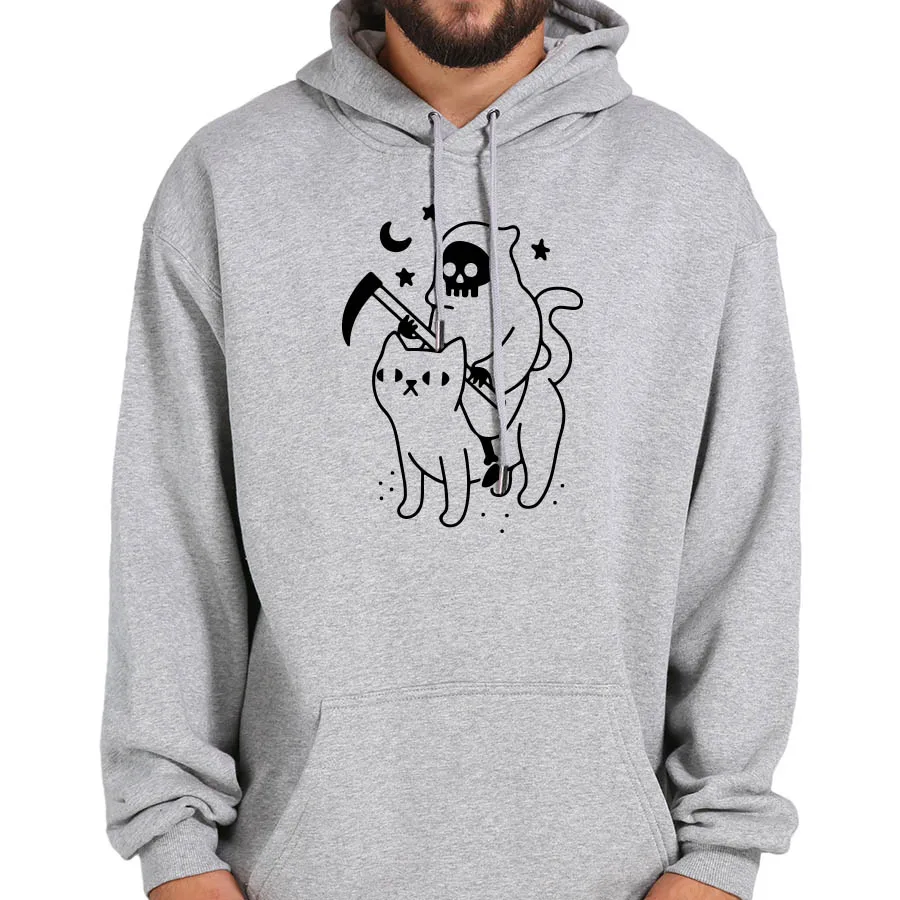 Cat Skull Sweatshirt Men Ghost Cool Graphic Print Hoody Pullover Plus Velvet Hooded Black Gray Winter Streetwear Hoodies