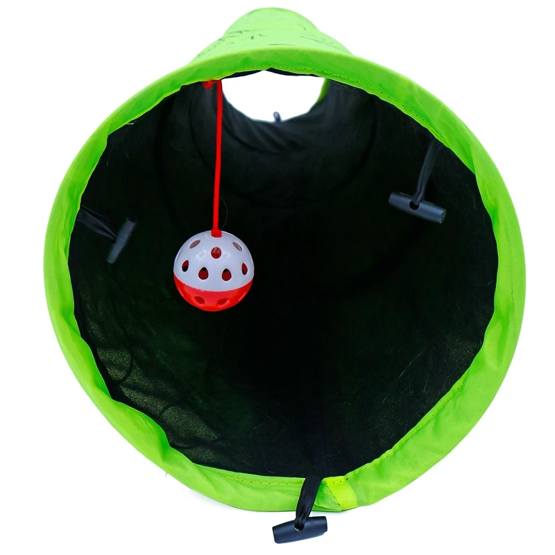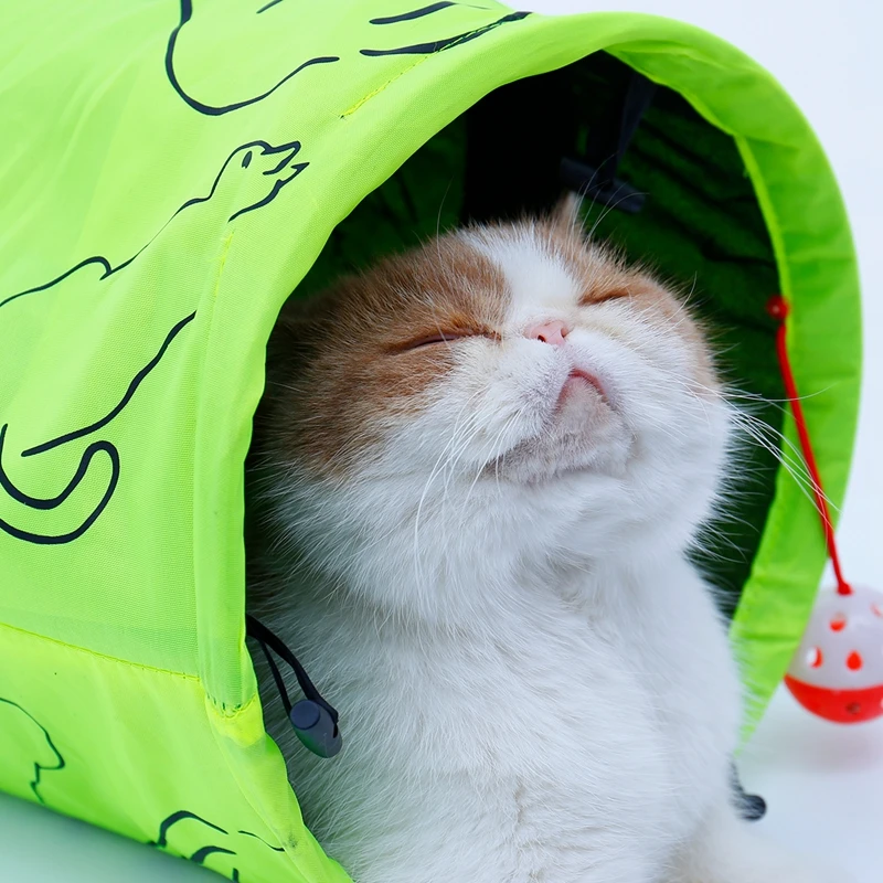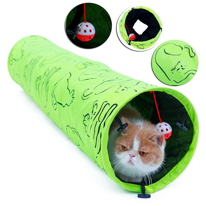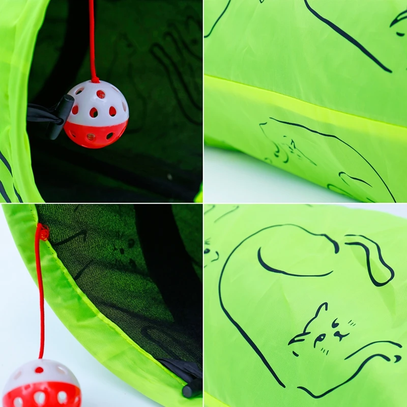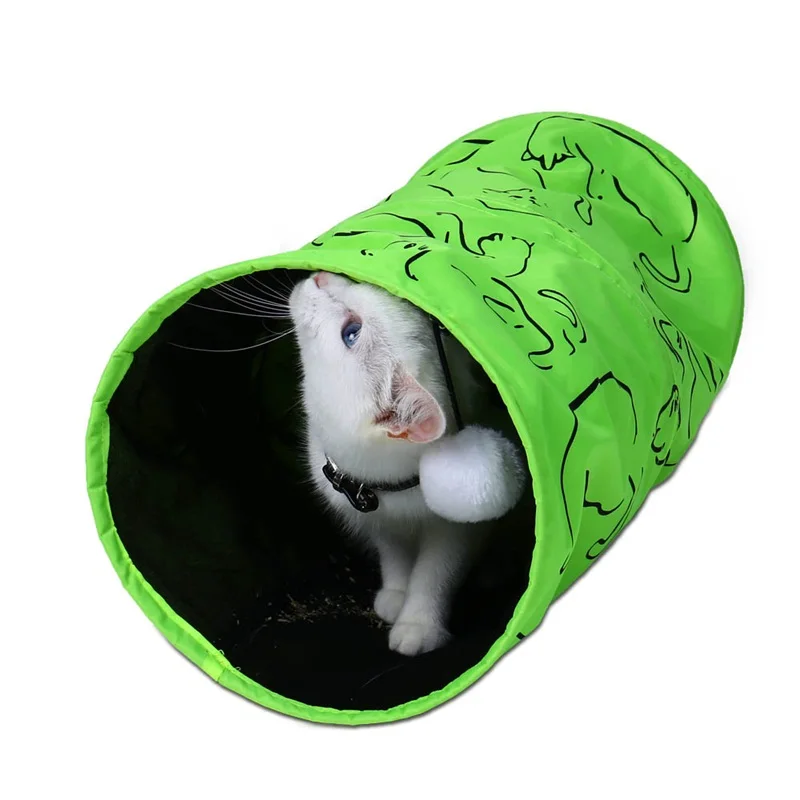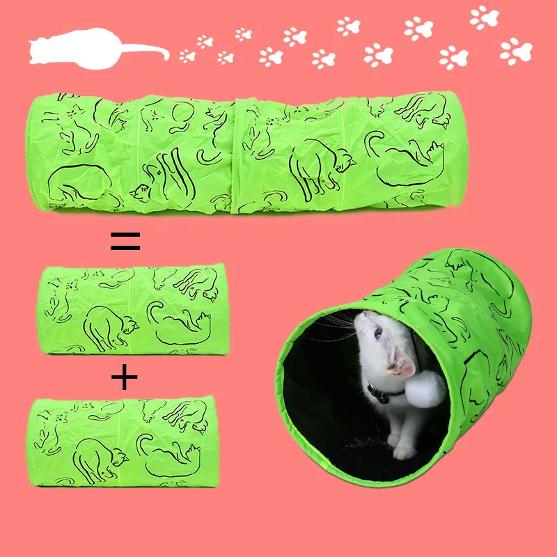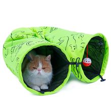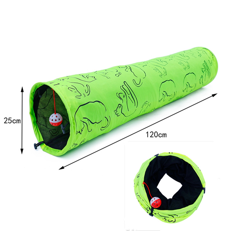 Cat Tunnel Funny 120cm Long Collapsible Oxford Cat Kitten Play Toy House Cat Dog Puppy Favor Green Bulk 2 Holes Pet Toy
