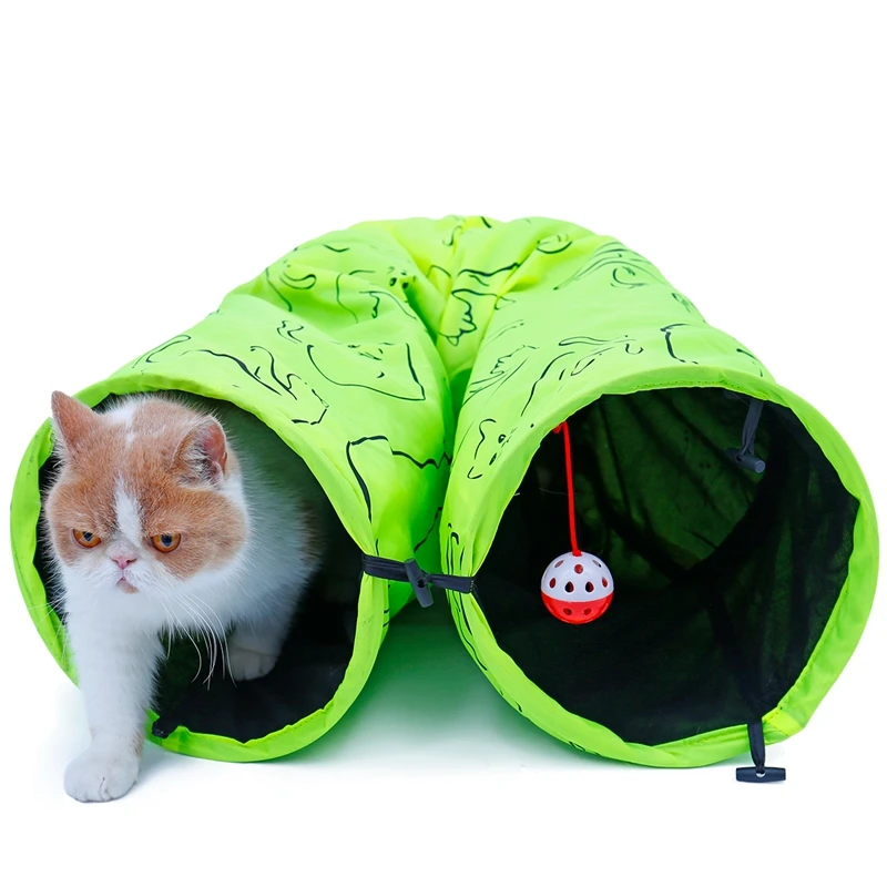 Cat Tunnel Funny 120cm Long Collapsible Oxford Cat Kitten Play Toy House Cat Dog Puppy Favor Green Bulk 2 Holes Pet Toy