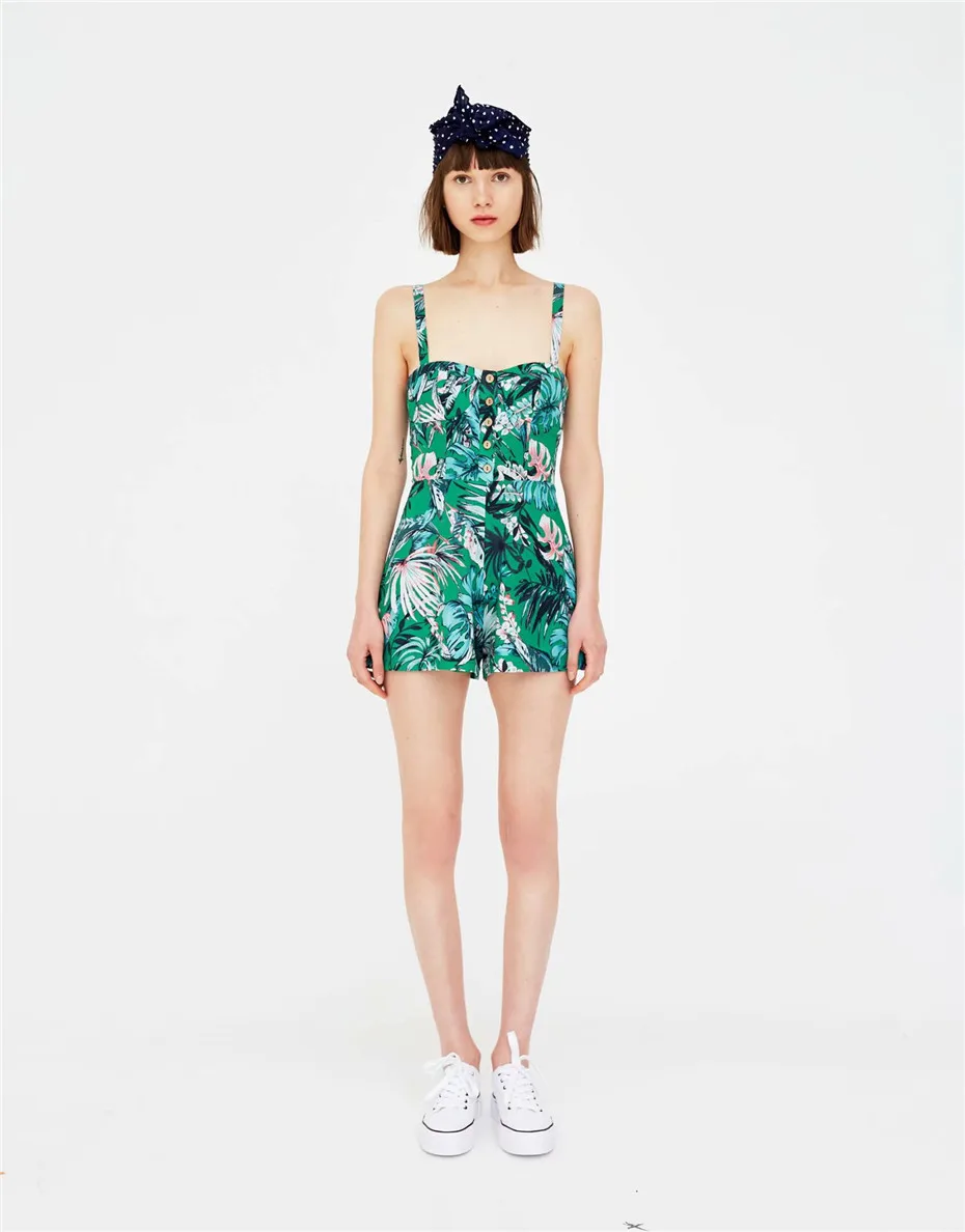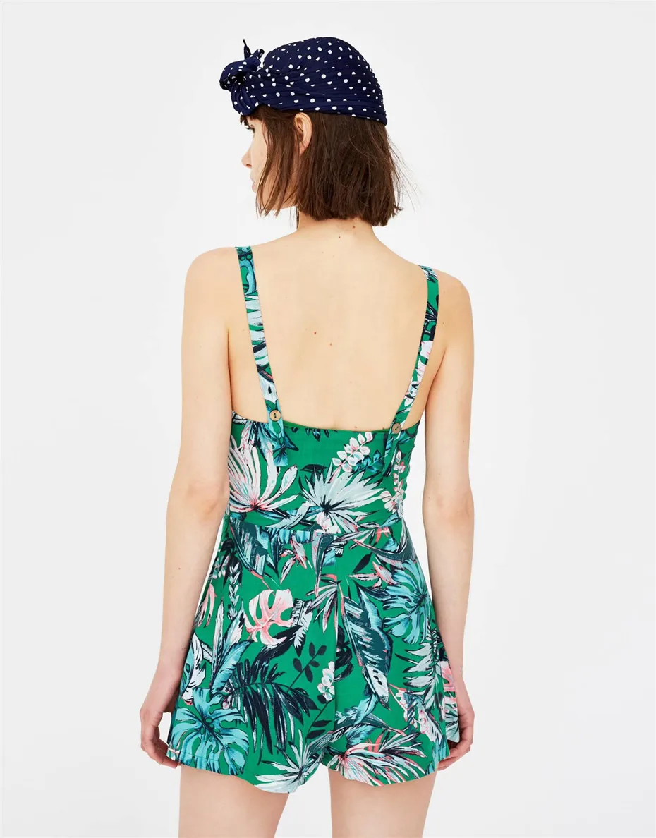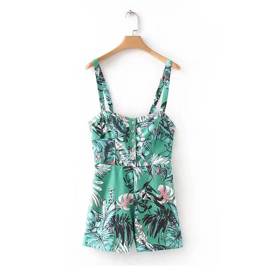 CCI Summer Floral Print Bohemian Short Chiffon Jumpsuit Women Strap Sleeveless Boot Cut Sexy Strapless Lady Romper CCI319-45
