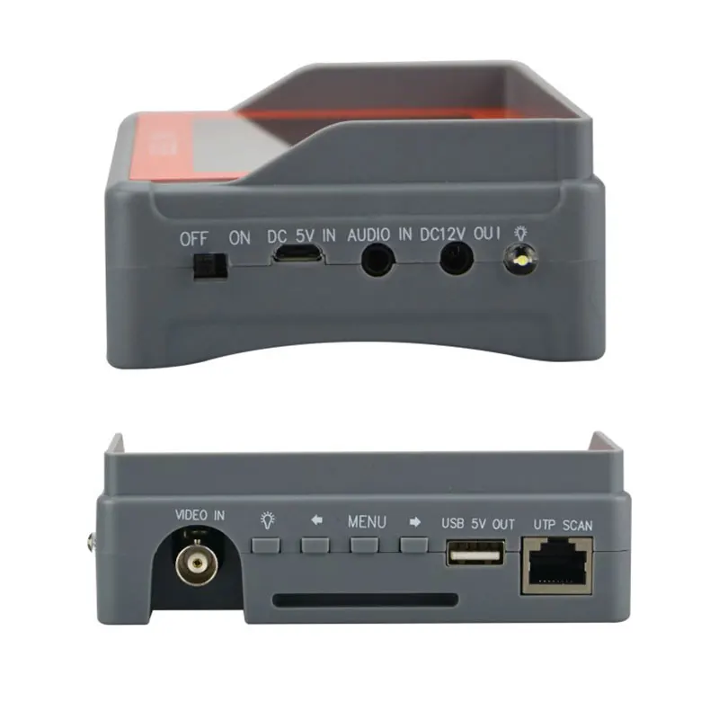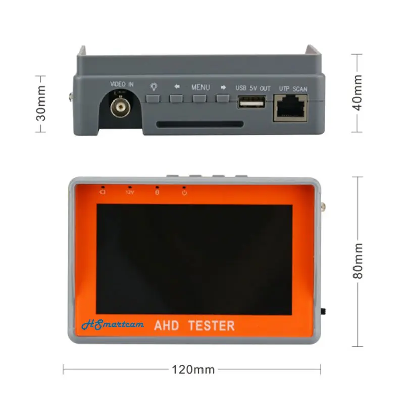 4.3″ inch AHD 2.0 Camera Tester CCTV Tester Monitor 12V1A output Analog cameras and AHD2.0 cameras testing support AHD2.0 1080P camera testing, analog CVBS Camera RS485 Testing.