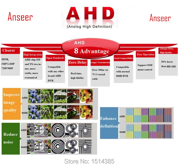 Latest HD 1080P 4 in 1 camera, compatible with TVI, CVI, AHD, and Analog DVR.