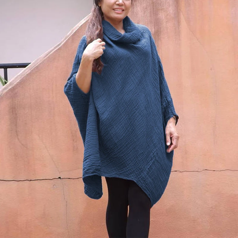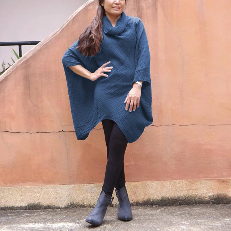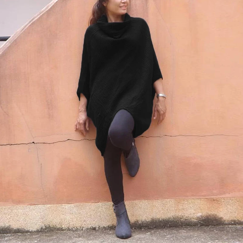 Product Description: Womens Cowl Neck 3/4 Sleeve Irregular Casual Loose Tops
