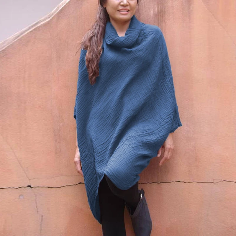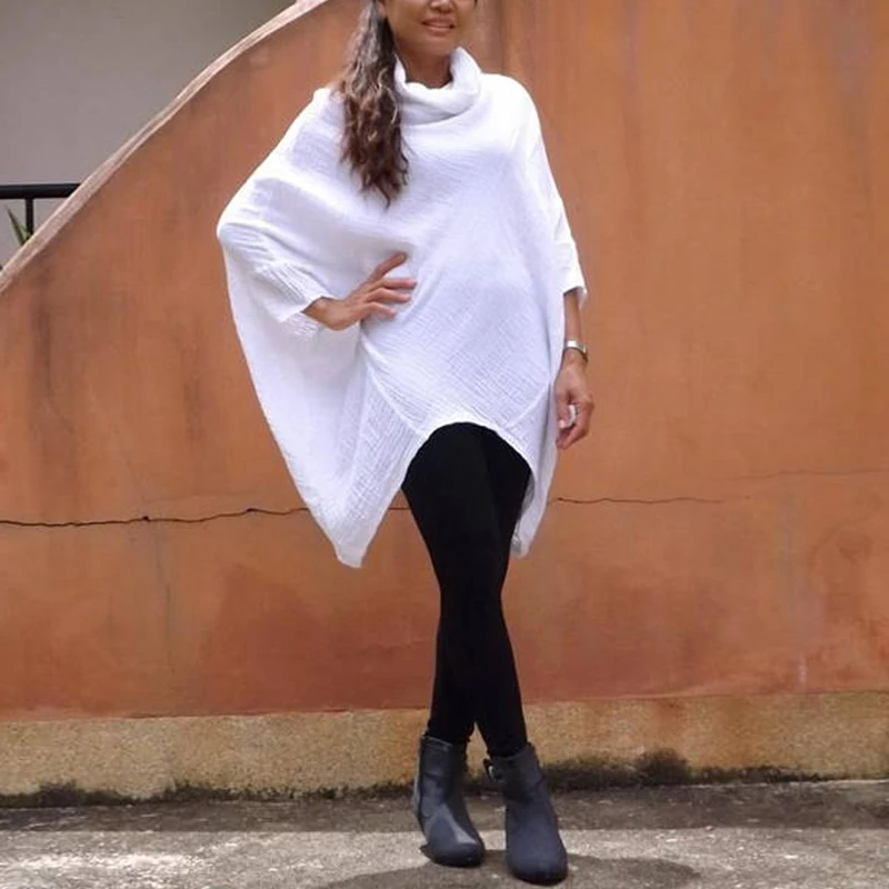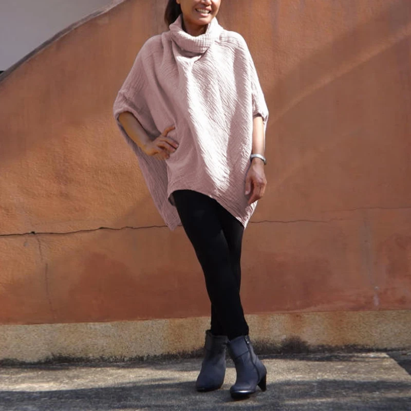 Product Description: Womens Cowl Neck 3/4 Sleeve Irregular Casual Loose Tops