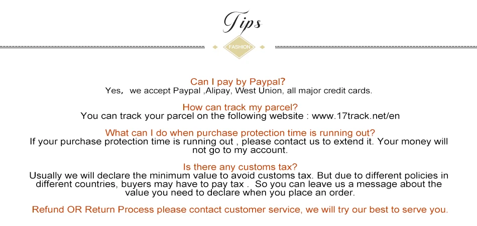We are not responsible for any custom fees once the items have shipped. By purchasing our products, you consent that one or more packages may be shipped to you and may get custom fees when they arrive in your country.