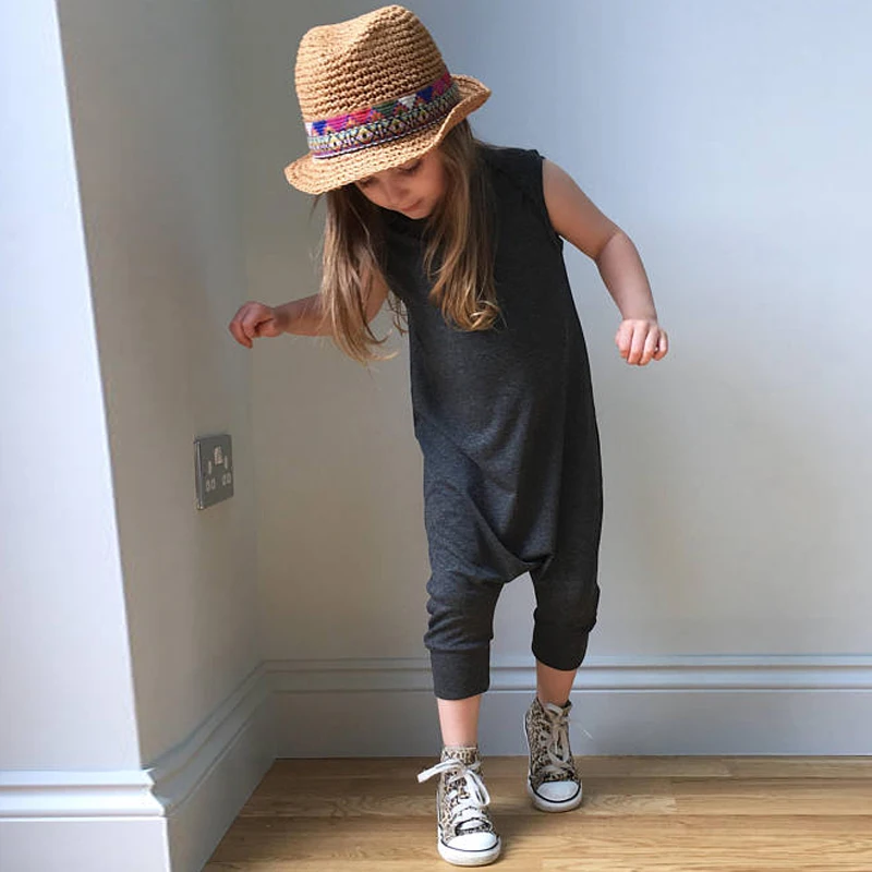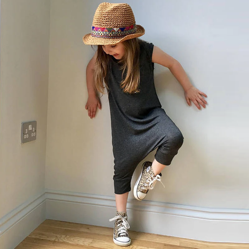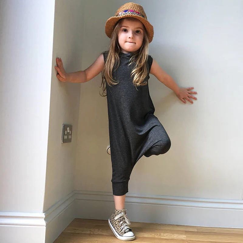Celmia Summer Baby Girls Overall Casual Solid Sleeveless Grey Jumpsuits Kids Girls Infantil Bebes Infant Overalls Baby Clothing