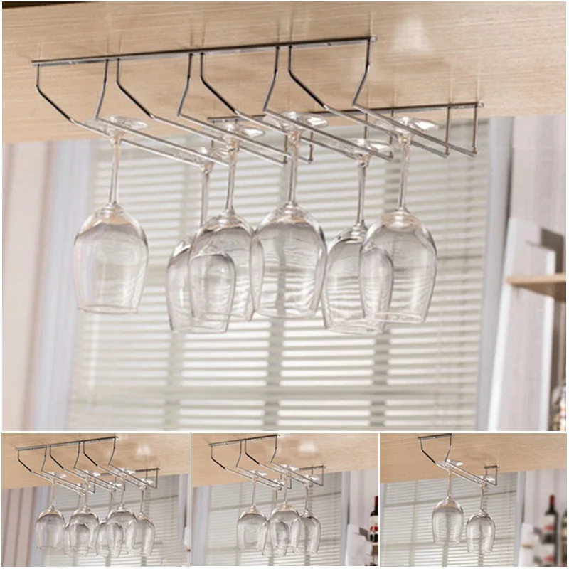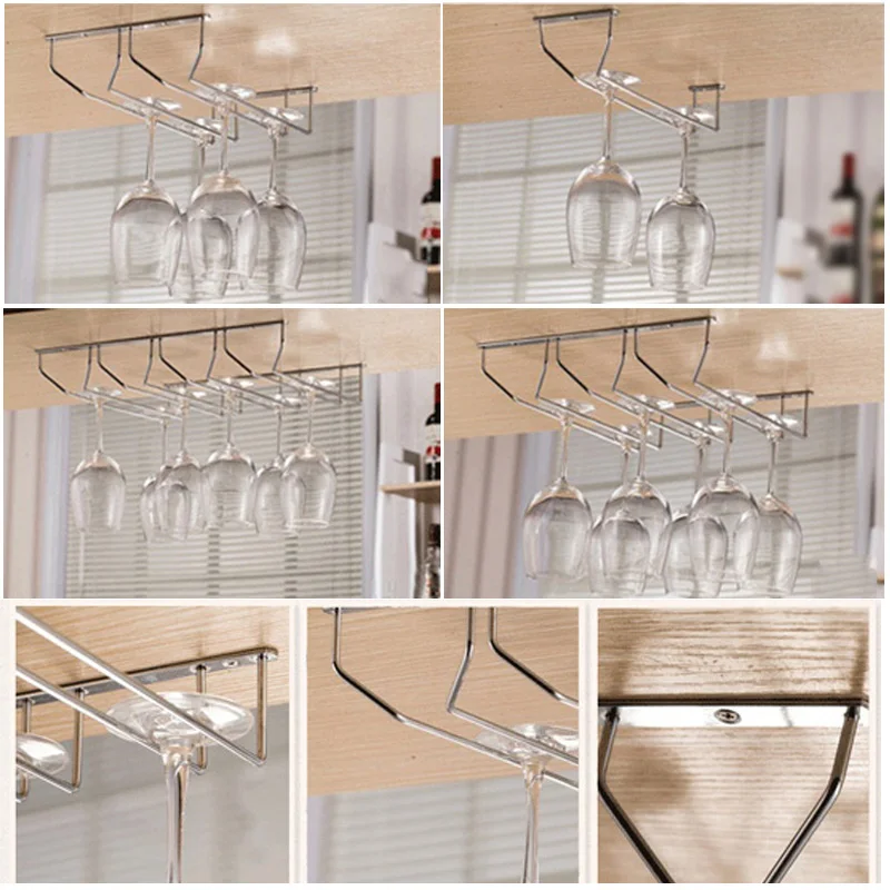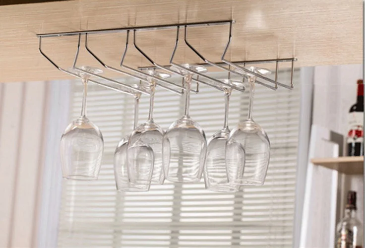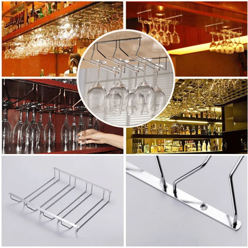 Champagne Stemware Rack Chrome Plated Wine Glass Cup Holder Kitchen Wall Mount Wine Rack Bar Hanger with Screws