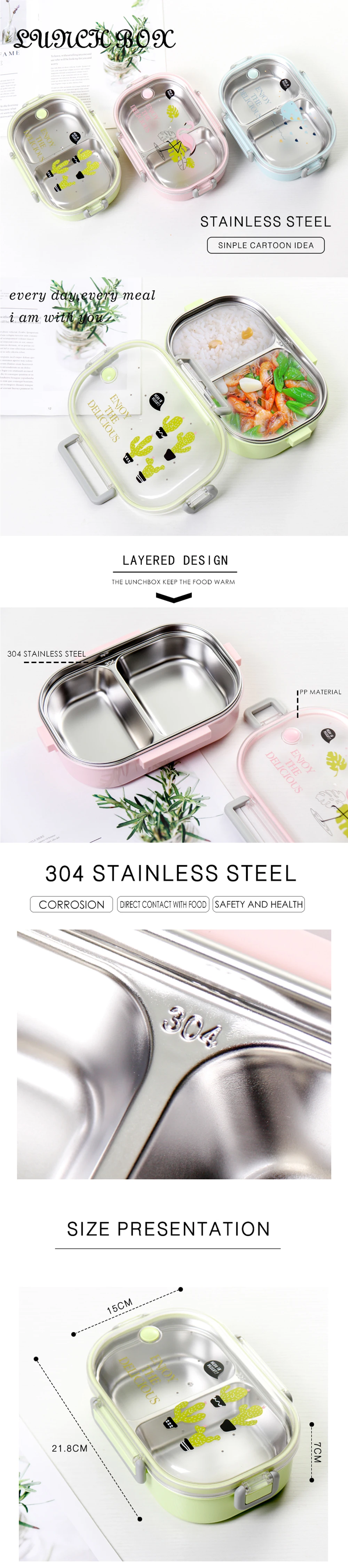 CHANOVEL 650ML 304 Stainless Steel Japanese Lunch Box With Compartments Bento Box For Kids School Picnic Food Container