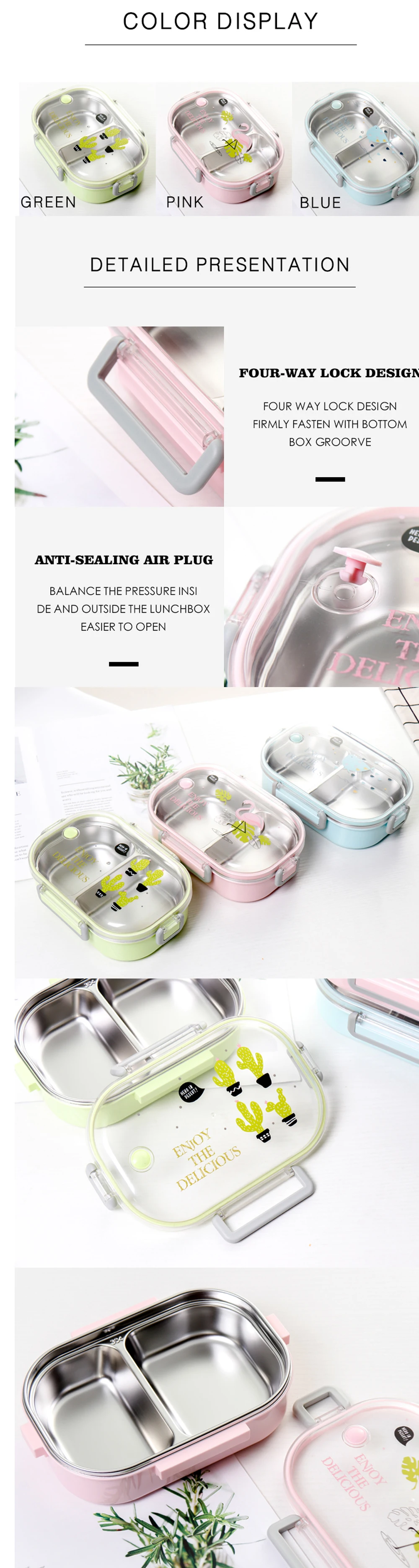 CHANOVEL 650ML 304 Stainless Steel Japanese Lunch Box With Compartments Bento Box For Kids School Picnic Food Container