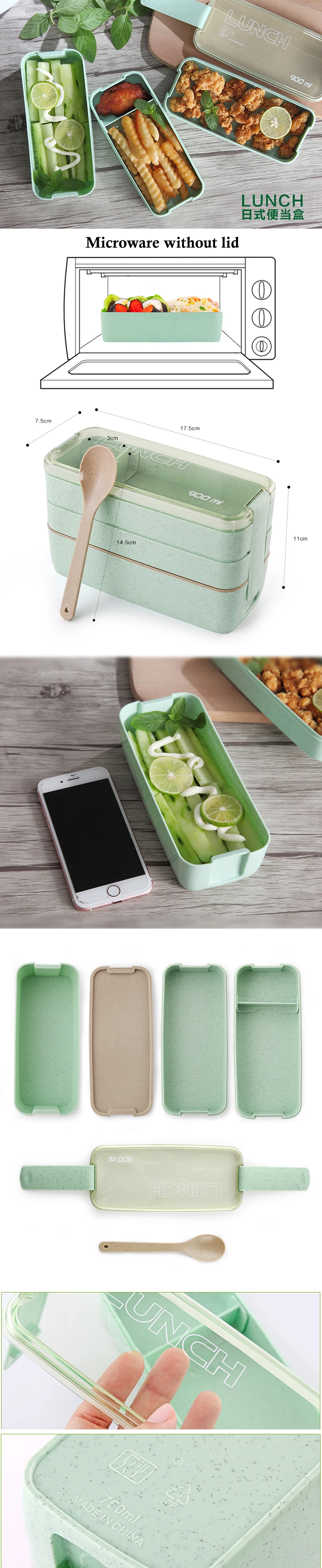 CHANOVEL 900ml Japanese Microwave Lunch Box Portable 3 Layer Bento Box Healthy Food Container Oven Dinnerware set